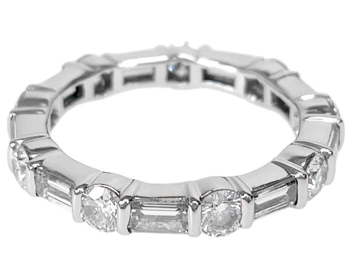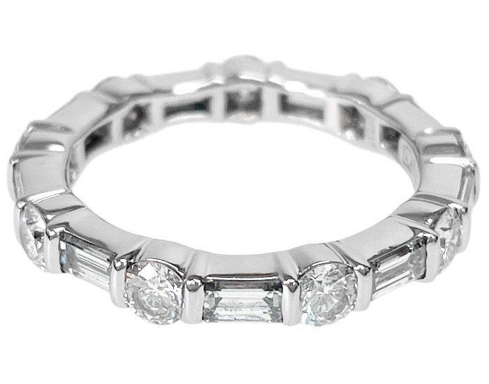 HarryWinston ハリーウィンストン ラウンド&エメラルドカット バーセット リング ダイヤモンド フルエタニティ PT950 4.5g #10 新品仕上済