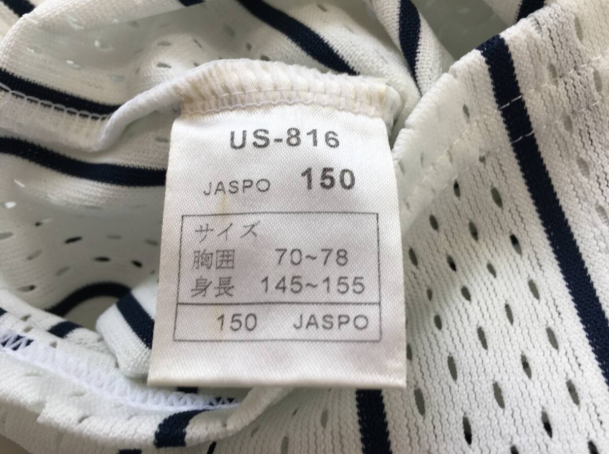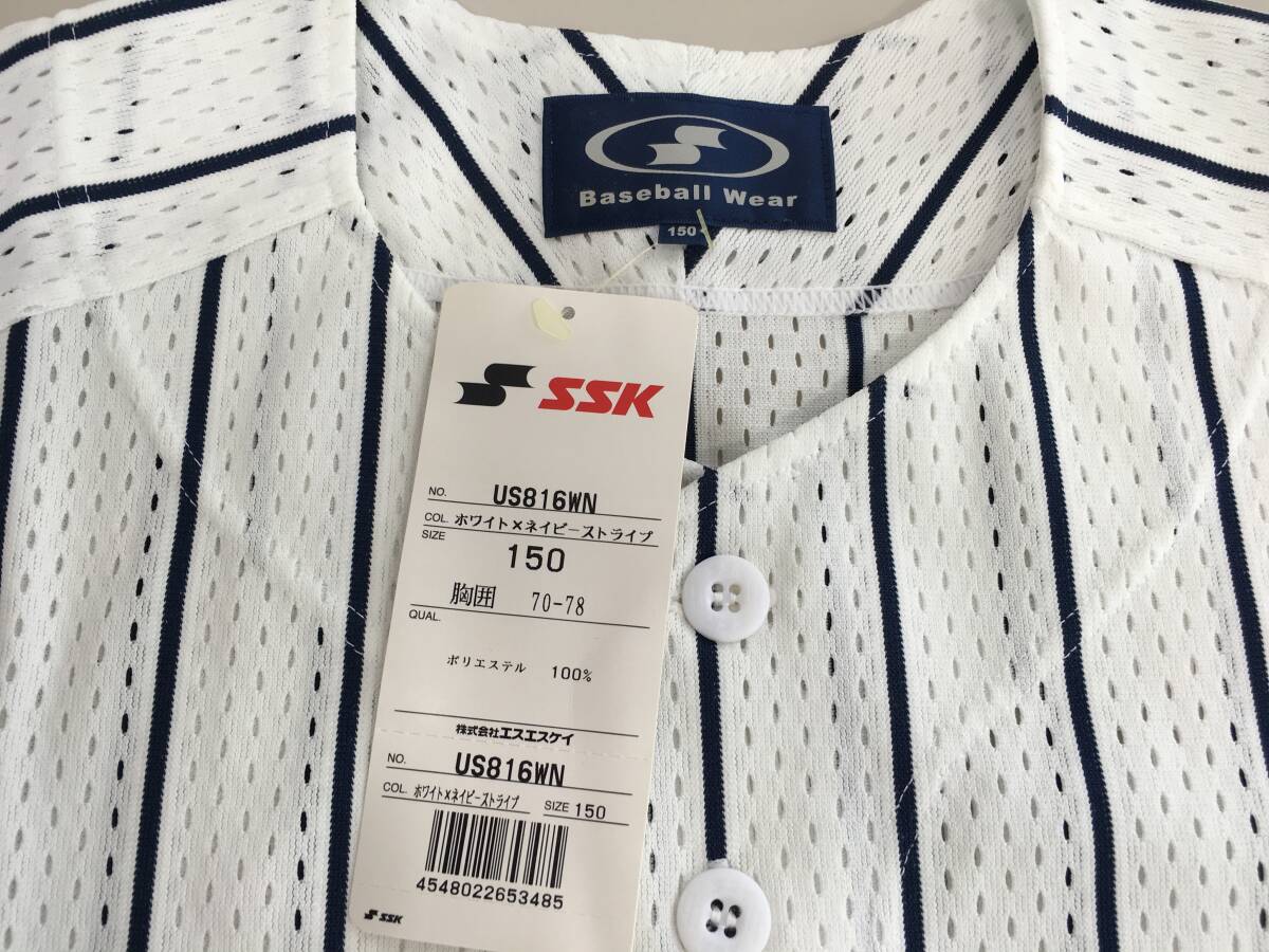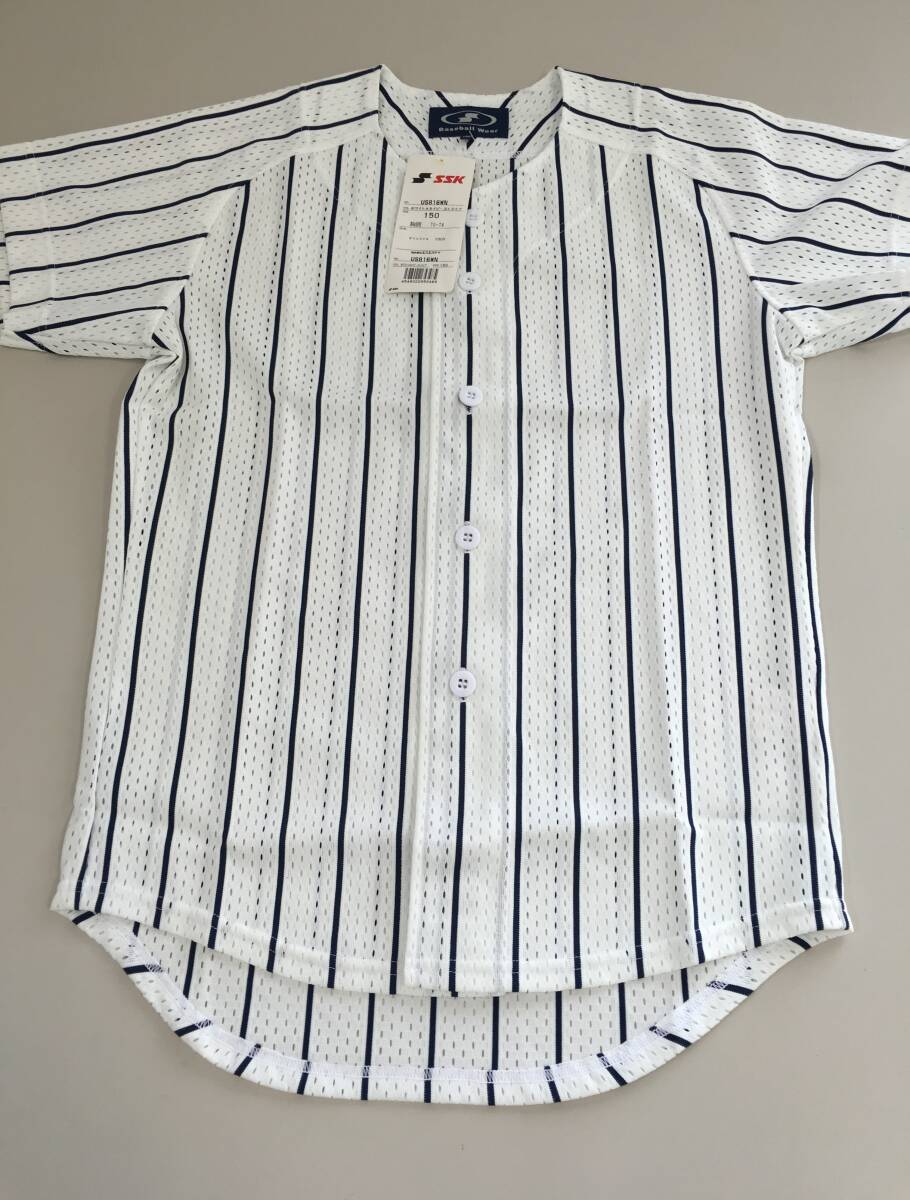 ♪【未使用保管品】 SSK ベースボールウエア 半袖 US816WN ジュニア サイズ150 ホワイト×ネイビー ストライプ (NF251026) 555-1-⑤