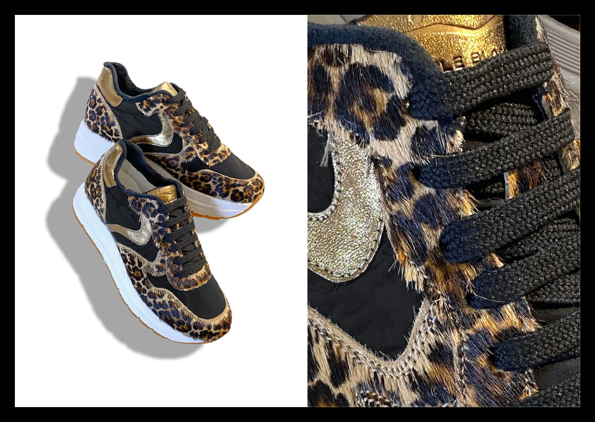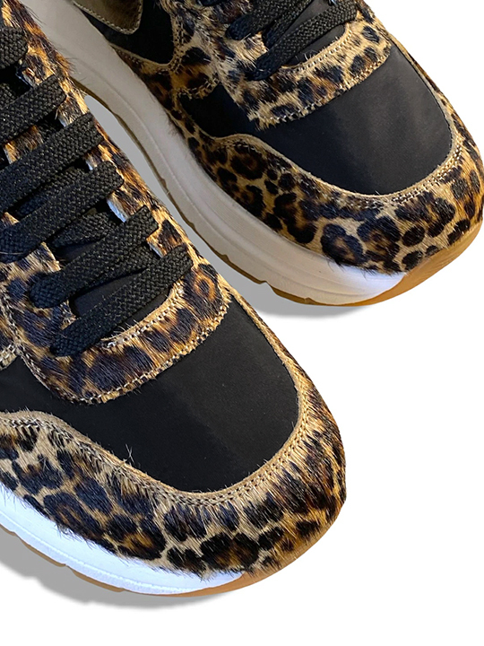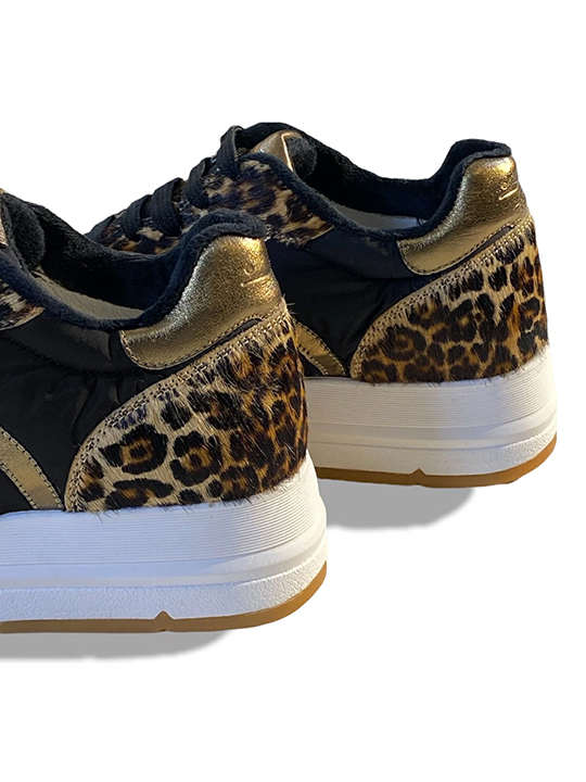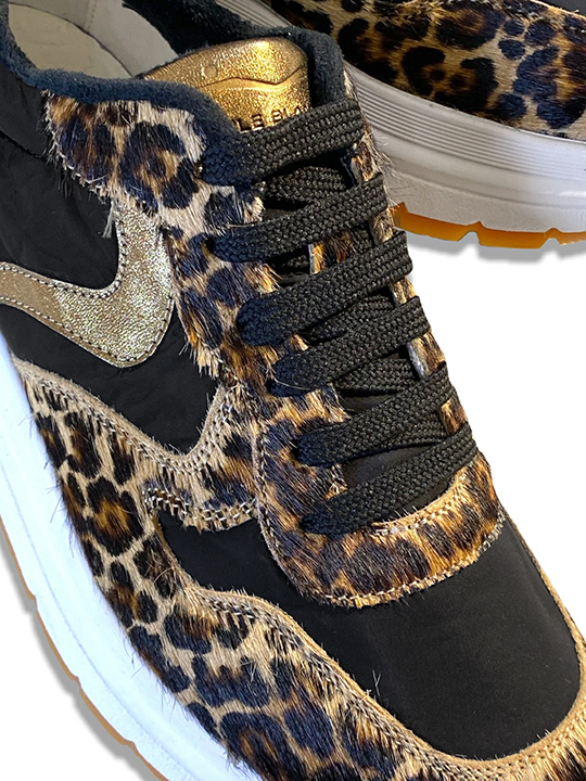 ブラックボディにレオパード柄のハラコレザーと煌びやかなゴールドで、雰囲気たっぷりな足元に♪ | ||