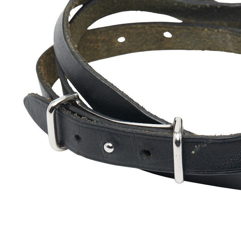 エルメス アピ2 ブレスレット ブラック シルバー レザー メタル レディース HERMES 【中古】