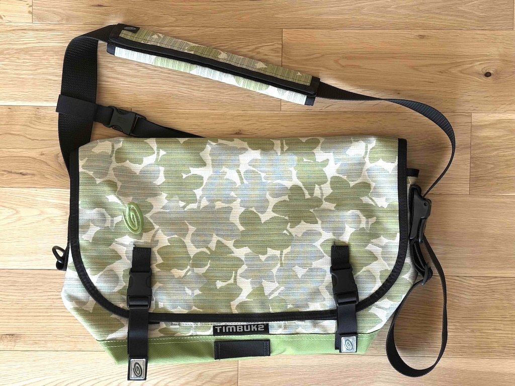 製造年不明 ブランド: Timbuk2 カラー: グリーン系 柄模様 スタイル: メッセンジャーバッグ 特徴: 調整可能なショルダーストラップ 素材: 耐久性のあるナイロン 内装素材:黒ナイロン (劣化はありません)品質上、スレが付きます。耐久性のあるナイロン製、調整可能なショルダーストラップ付きのグリーン・メッセンジャーバッグ。