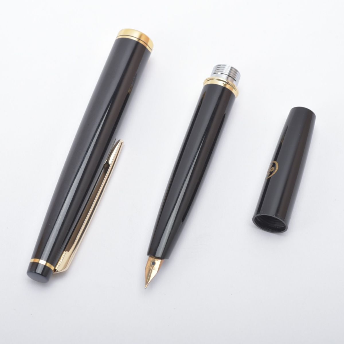 極美品 PILOT パイロット 万年筆 ペン先14K-585 ブラック ゴールド ショート 無地 シンプル 文房具 文具 ブランド #N※C828