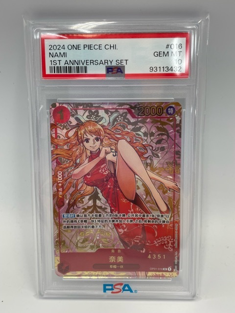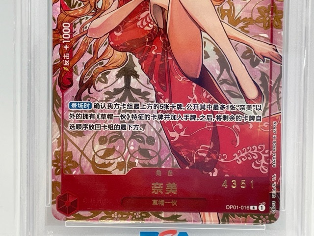 134/NC019☆中古品☆ワンピースカードゲーム★難あり★〔PSA10鑑定済〕ナミ(中国版/シリアル/illust:isuZu)【R】 OP01-016