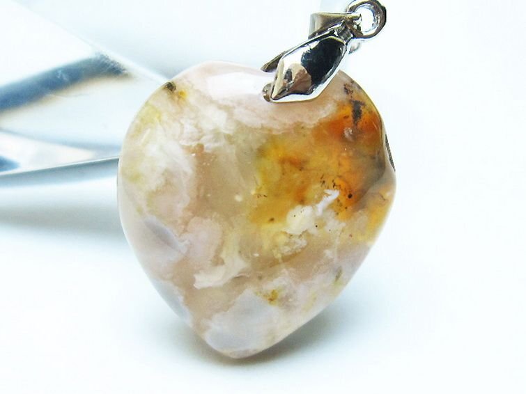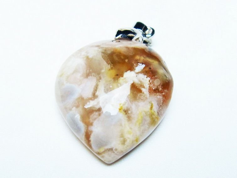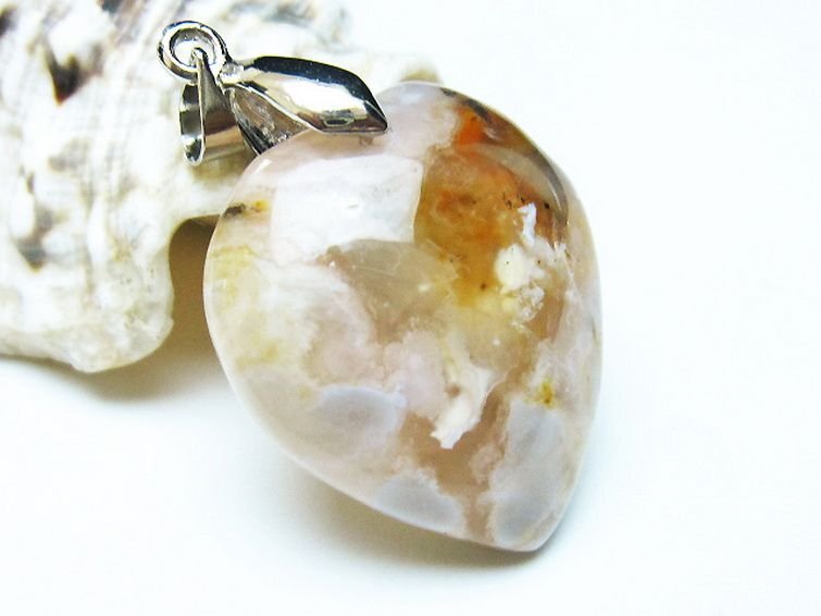 | ■商品名: 桜メノウ チェリーブロッサムアゲート ハート ペンダント ■商品ID: T335-2905 ■商品重量:約 7.4g ■商品サイズ: 高約:26mm 横約:23mm 厚約:9mm 【アゲート(瑪瑙)】 和名では瑪瑙(めのう)といい、アゲートの模様が馬の脳のように見える事からこのような名前が付けられました。 アゲートは赤、緑、青、黄、黒など、様々な色に着色されることで石本来のパワーがさらにアップするといわれており、着色により魅力を増す天然石はアゲートだけとも言えます。 さらにはアゲートを組み合わせるとペアになっているペアアゲート(トレジャーメノウ)は龍穴を生み出すとされ、風水的にも良いといわれています。 アゲートは古来より日本やインドやチベットなどで魔よけやお守りとされてきました。 失敗や不幸を遠ざけ金運や仕事運、成功運とも結び付けてくれる効果のほか、安産のお守りにも良いとされています。 さらに家庭円満や対人関係をスムーズにするなど、オールマイティな効果を持った石です。 ⇒ アゲートをもっと詳しく ◆ワンポイント情報 アゲートはカルセドニーの変種で、染色がされていなくともそれぞれの種類に多様な色があります。 ざっと仲間を挙げてみてもオニキス(黒)、サードニクス(橙色)、ブルーアゲート(青)、グリーンアゲート(緑)、イエローアゲート(黄)、ブルーレースアゲート(縞青)、モスアゲート(縞緑)、天眼石(縞黒)、カーネリアン(橙色)、ジャスパー(多様な縞)などとても多くの特徴と色合いを持っています。 |