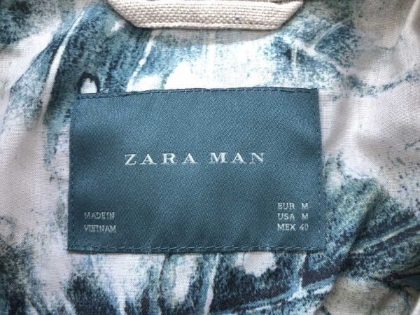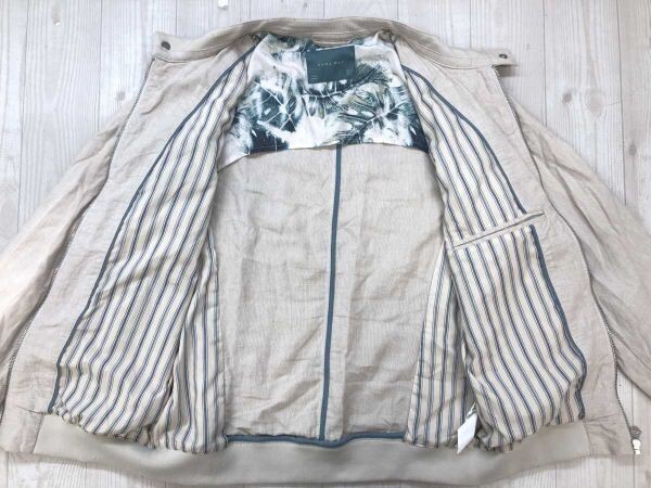 ザラ ZARA レトロ アメカジ スタンドカラー ジップアップ 綿麻 コットンリネン ブルゾン シングル ライダース ジャケット メンズ M 生成り です。