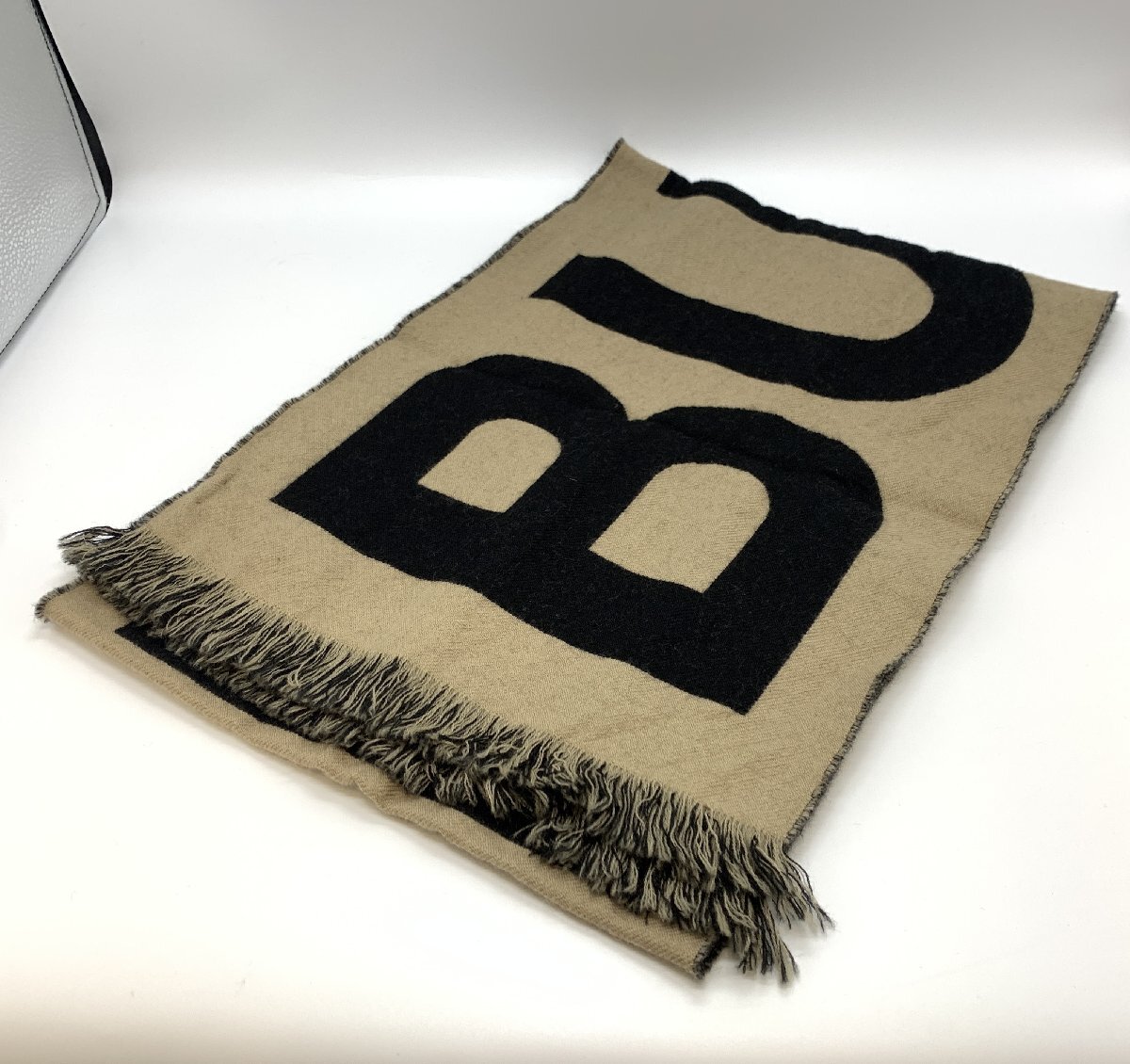 | 【商品名】BURBERRYS バーバリー 8035525 ロゴ ジャカード マフラー ウール スカーフ ストール ブラウン系 ベージュ系 ☆良品☆[65-1017-E10] | |||||