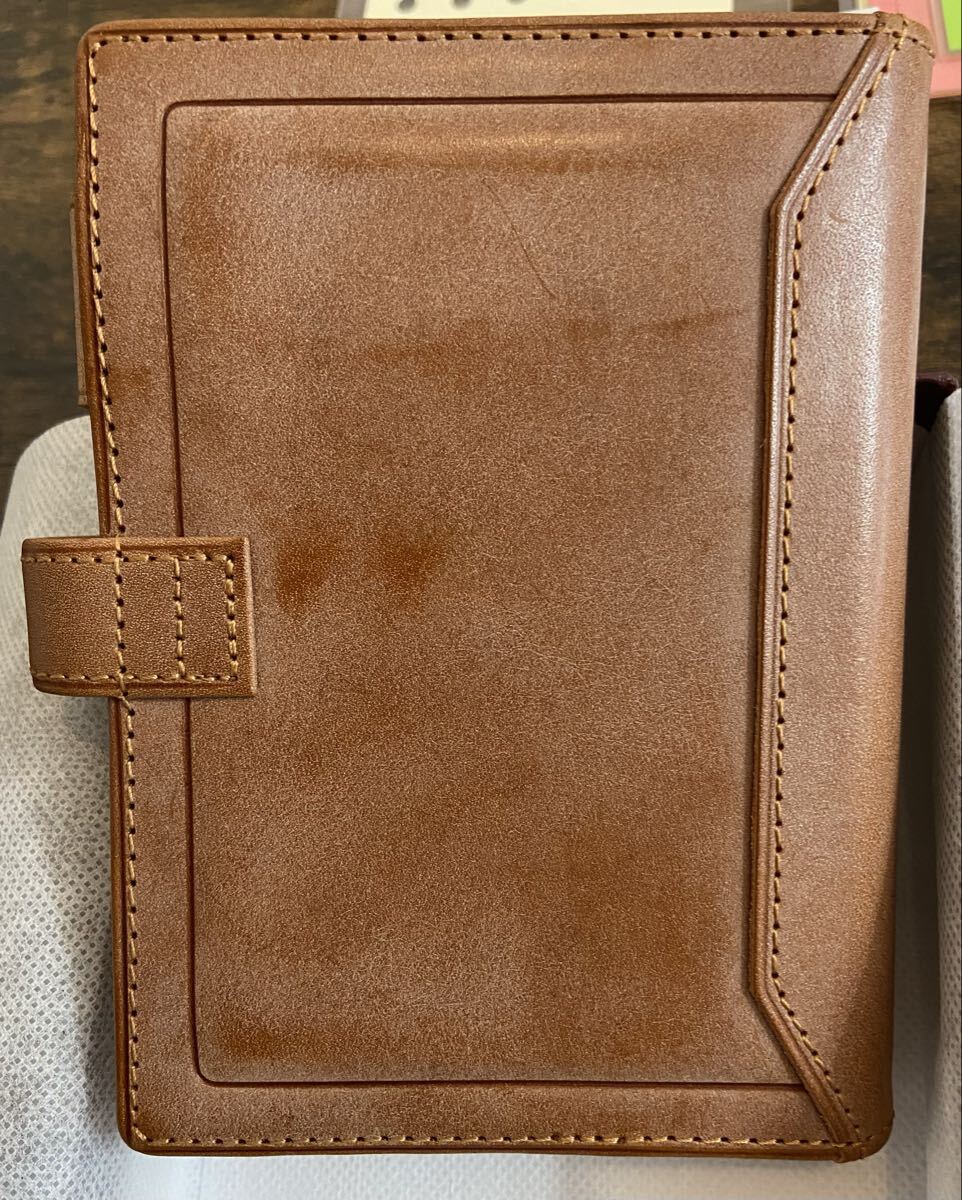 2. 皮加工の特性で白みがかってましたが、お手入れをして使っていくと馴染んできます。