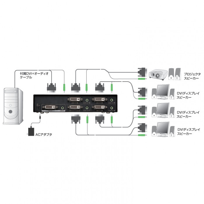 ※配送の送り主はサンワサプライ(株)と記載されています。沖縄・離島配送不可となります。 当店は正規販売代理店です。 特長 1080p(1920×1080ドット)のフルハイビジョン映像、WUXGA(1920×1200ドット)に対応しています。 HDCP(High-bandwidth Digital Content Protection)対応製品です。 DVI-I(29pin)、DVI-D(24pin)に対応しています。 各ポートに接続するディスプレイのEDIDを比較し、接続された全てのディスプレイで表示できる最適な最大解像度を割り出してパソコンへ出力要求をします。 電磁波やノイズの影響を受けにくいスチールケースを採用しています。 カスケード接続可能です。(3段階まで) メーカー保証期間365日 ※当店発注日からになります 気をつけておりますが、タイミングによっては在庫切れの場合があります。 <ご注意> ※分配されるDVI出力は同じ信号となりますので、分配されるディスプレイが同じ解像度などの信号をサポートしている必要があります。あらかじめご注意ください。 ※カスケード接続についてはDVI出力機器~分配器間が1.8m、分配器~2段階目分配器が1.8m、2段階目分配器~3段階目分配器まで1.8m、3段階目分配器~ディスプレイまでが5m以内になるよう設置してください。(最大表示解像度1920×1200設定の際) ※カスケード接続時は接点の増加により通常以上にノイズの影響を受けます。DVI出力機器から最先端のディスプレイまでの総距離をできるだけ短くしてご使用ください。 ※本製品付属のケーブルはDVI-D(24pin)ケーブルです。デジタル信号用になりますのでアナログ信号を変換してご使用になる場合は別途DVI-I(29pin)ケーブルをご用意ください。 仕様