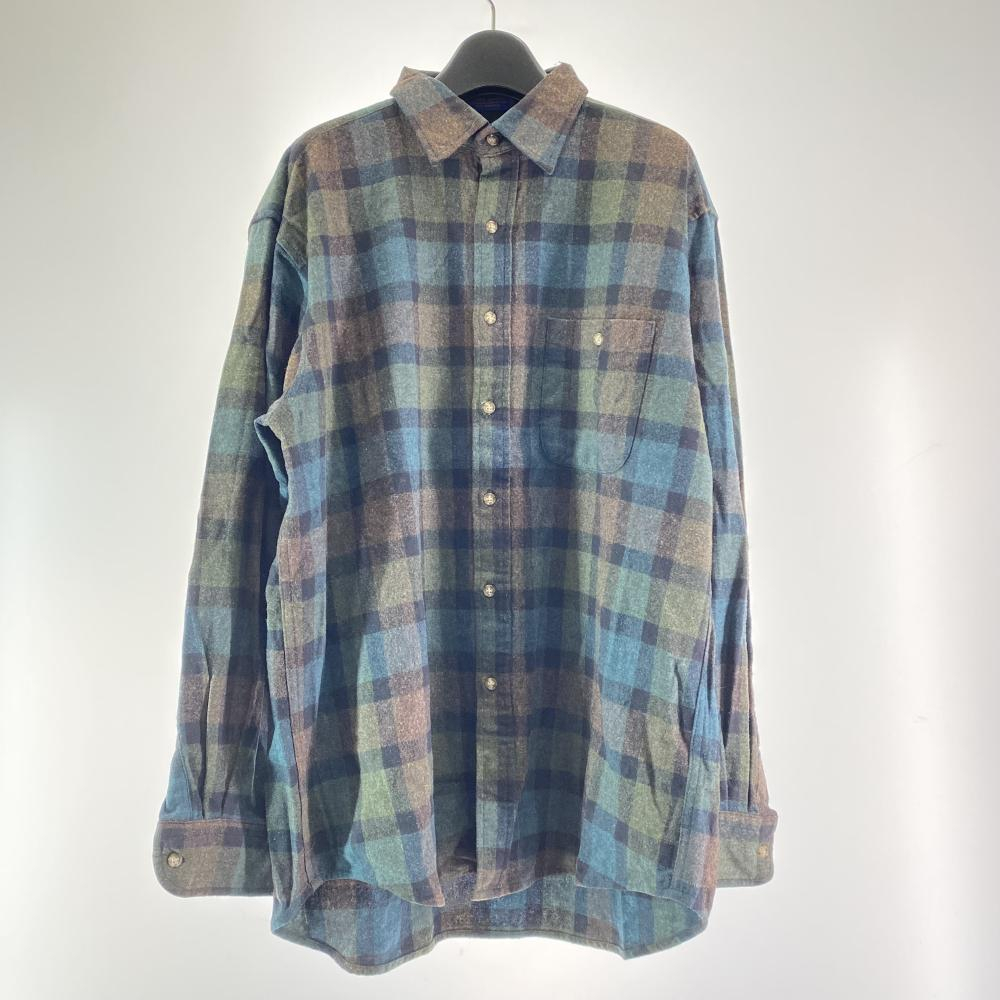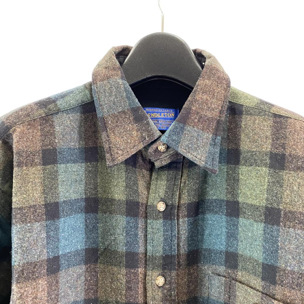 | 209999720508)00s PENDLETON シャドーチェック長袖シャツ サイズL グリーン×ブラウン |
