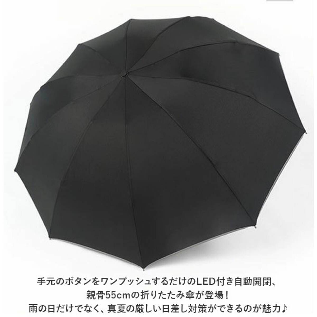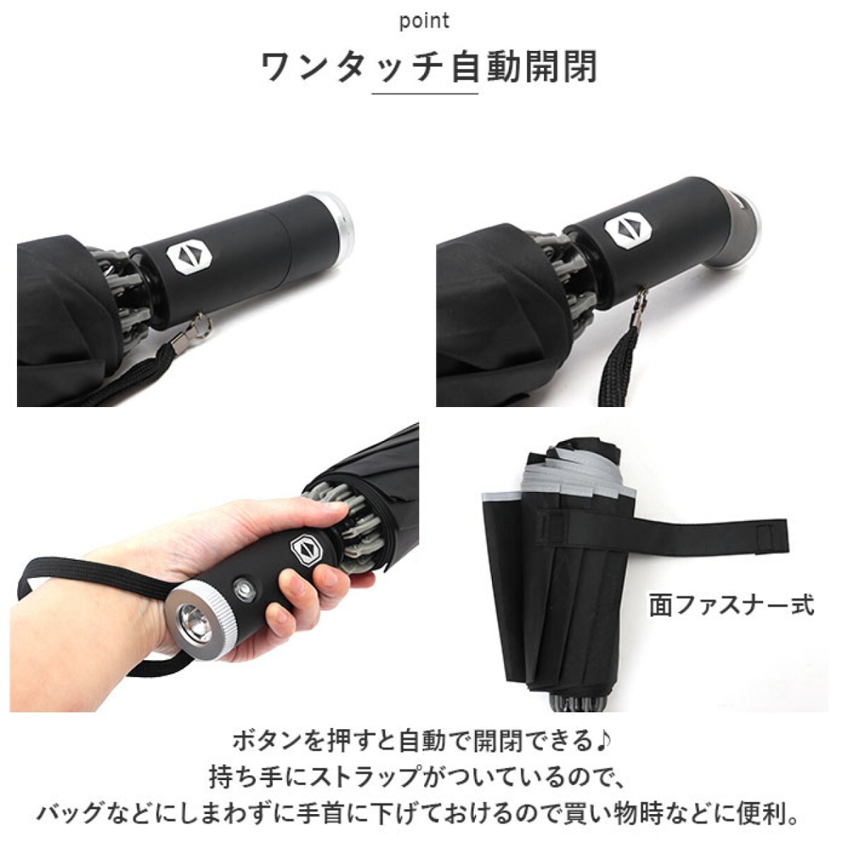 手元のボタンをワンプッシュするだけのLED付き自動開閉、親骨55cmの折りたたみ傘が登場!