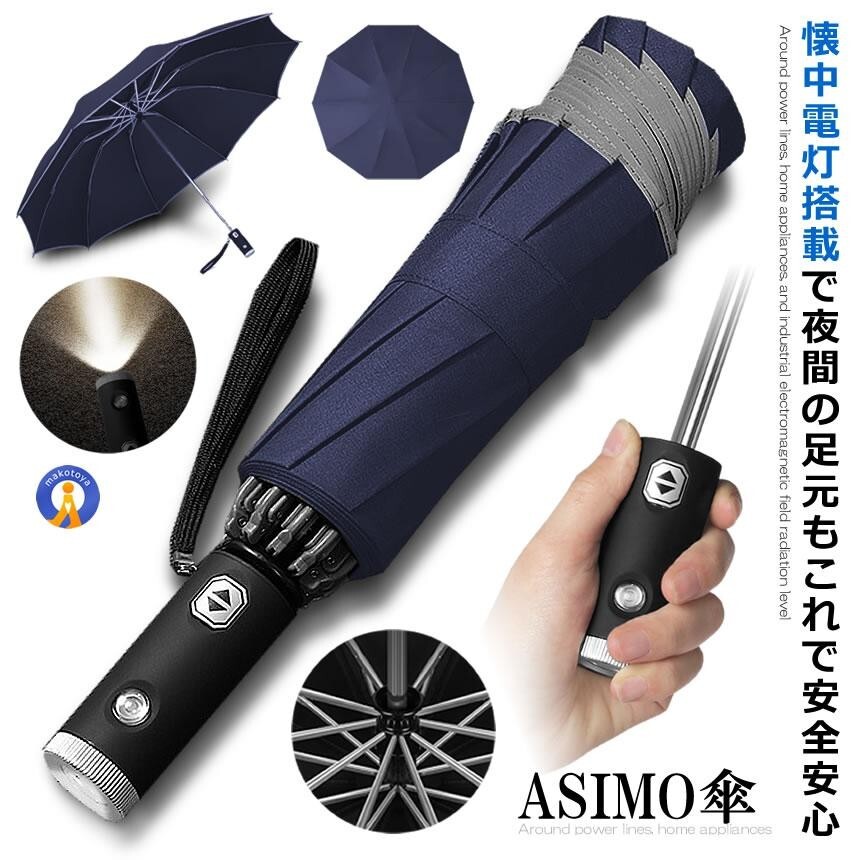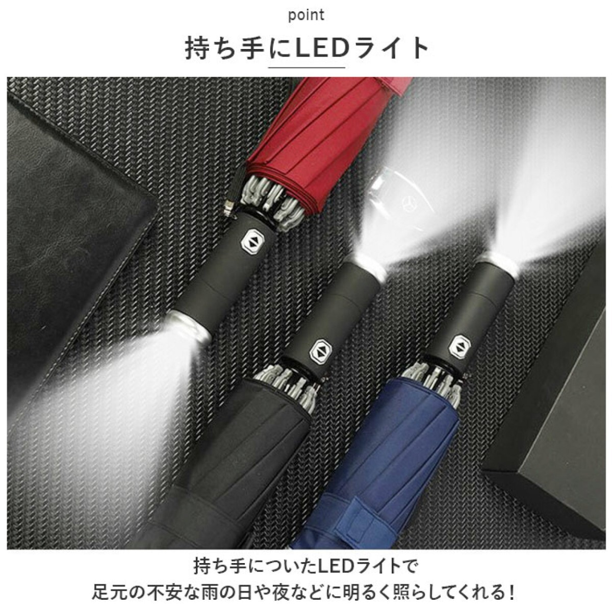 高品質 LEDライト付き【超大10本骨逆折り式反射テープ付き】 折りたたみ傘 折り畳み傘 持ち手360°方向変換可能 メンズ 大きい ビッグサイズ おりたたみ傘 ワンタッチ 自動開閉 懐中電灯搭載 uvカット 耐強風 超撥水 晴雨兼用 男子日傘 台風対応 梅雨対策 レディース