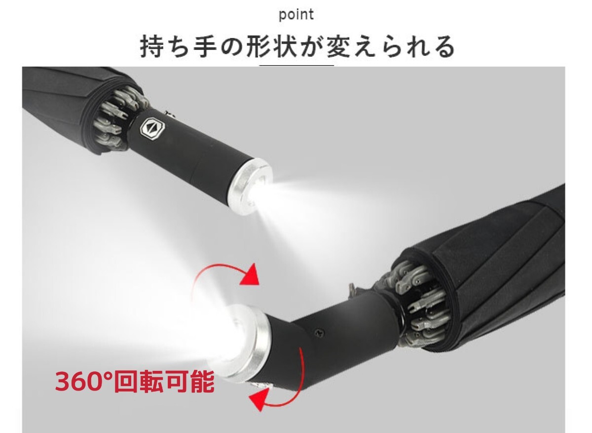 ・持ち手についたLEDライトで足元の不安な雨の日や夜などに明るく照らしてくれる!