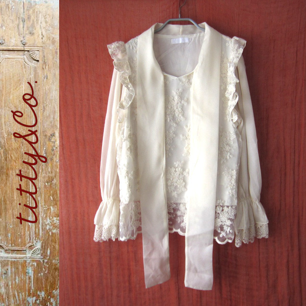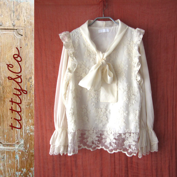 TITY&CO/ティティーアンドコー★ レース シフォン リボン付きブラウスです。