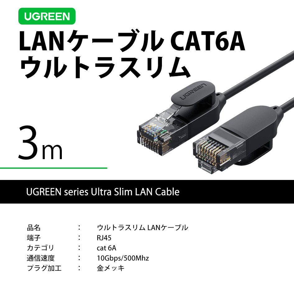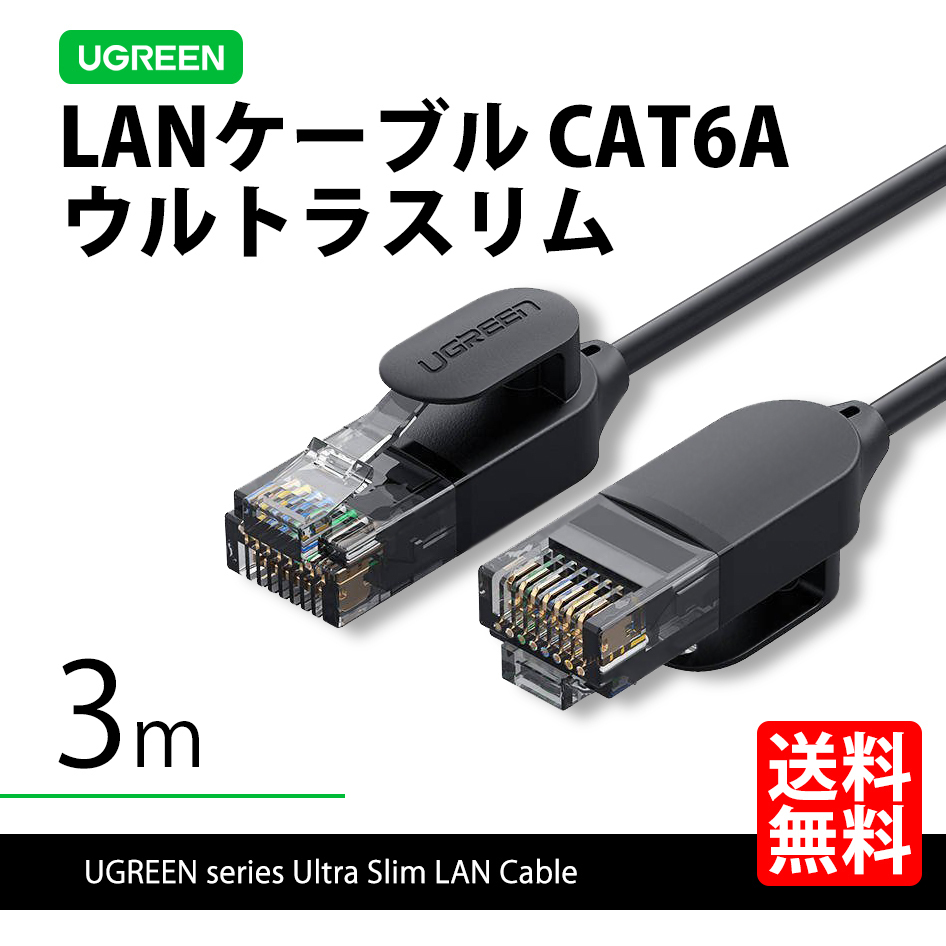 <ハイエンドモデル UGREEN 70653 LANケーブル ウルトラスリム CAT6A 3m 10ギガ 高速通信 送料無料>