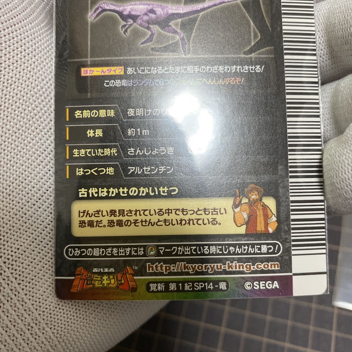 古代王者恐竜キングより、『覚新第1紀 SP14-竜 エオラプトル シークレット』の出品です。
