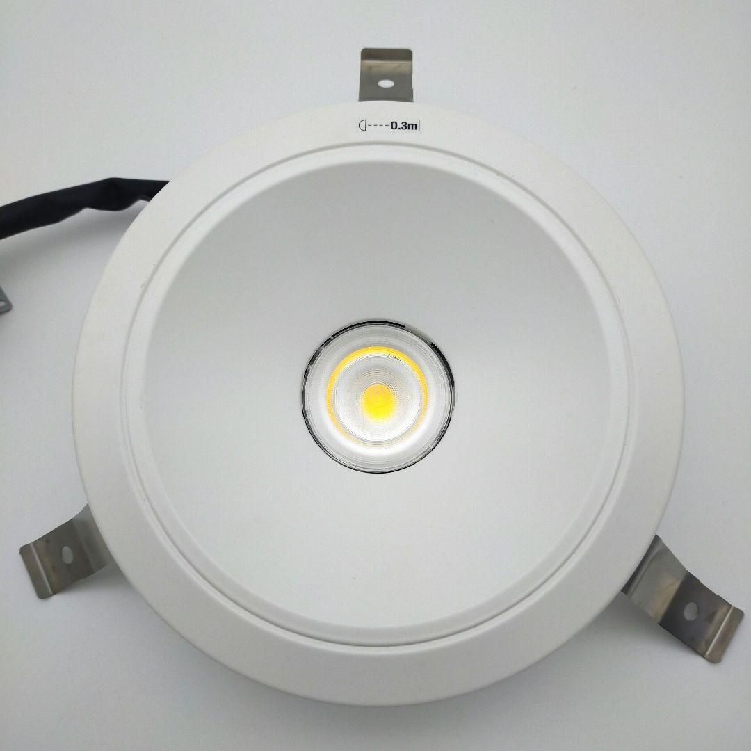シンプルなホワイトデザインのダウンライト、電源ユニット付きで取り付け簡単。開口Φ150(150より小さければ広げて取り付け可能)です。