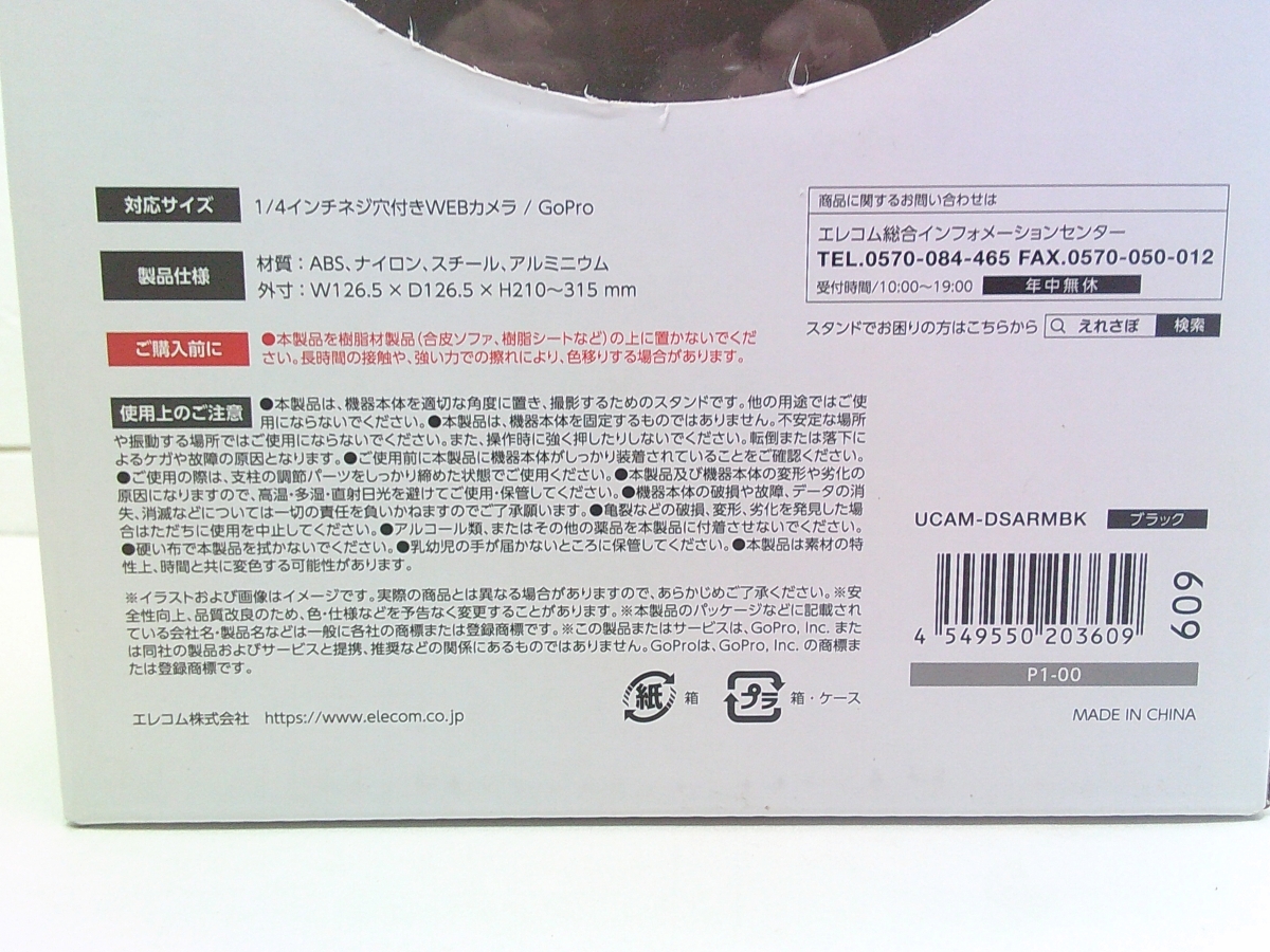 WEBカメラ用卓上スタンド_ GoPro用アダプタ付属 ブラック UCAM-DSARMBK(未使用中古品×1セット)