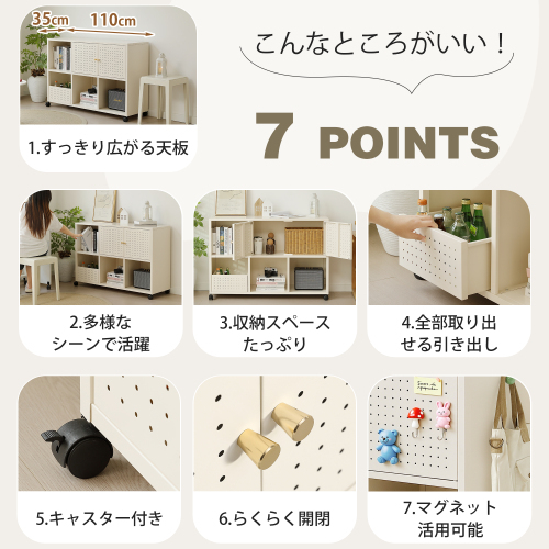 • 【キャスター付き】ダイニングやリビングなどの収納スペースを効率よく増やし、スッキリと小物を整理整頓。キャスター付きなのでスムーズに移動でき、使いたい場所に簡単に持ち運べるので便利です。