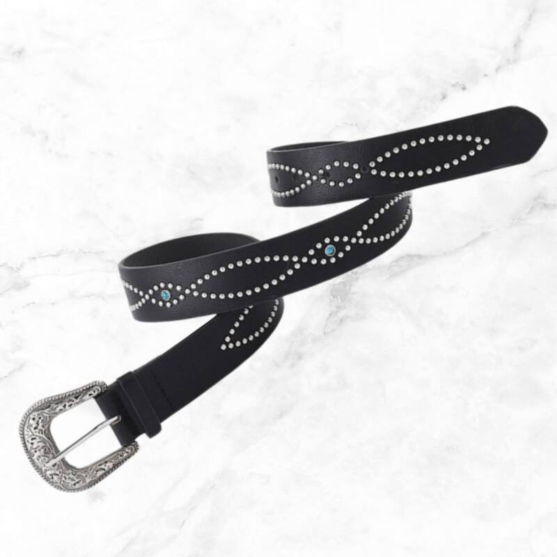 ウエスタンベルト スタッズ ターコイズ レザー ブラック メンズ レディース ヴィンテージ 古着 Y2K アメカジ グランジ バイカー USA PU