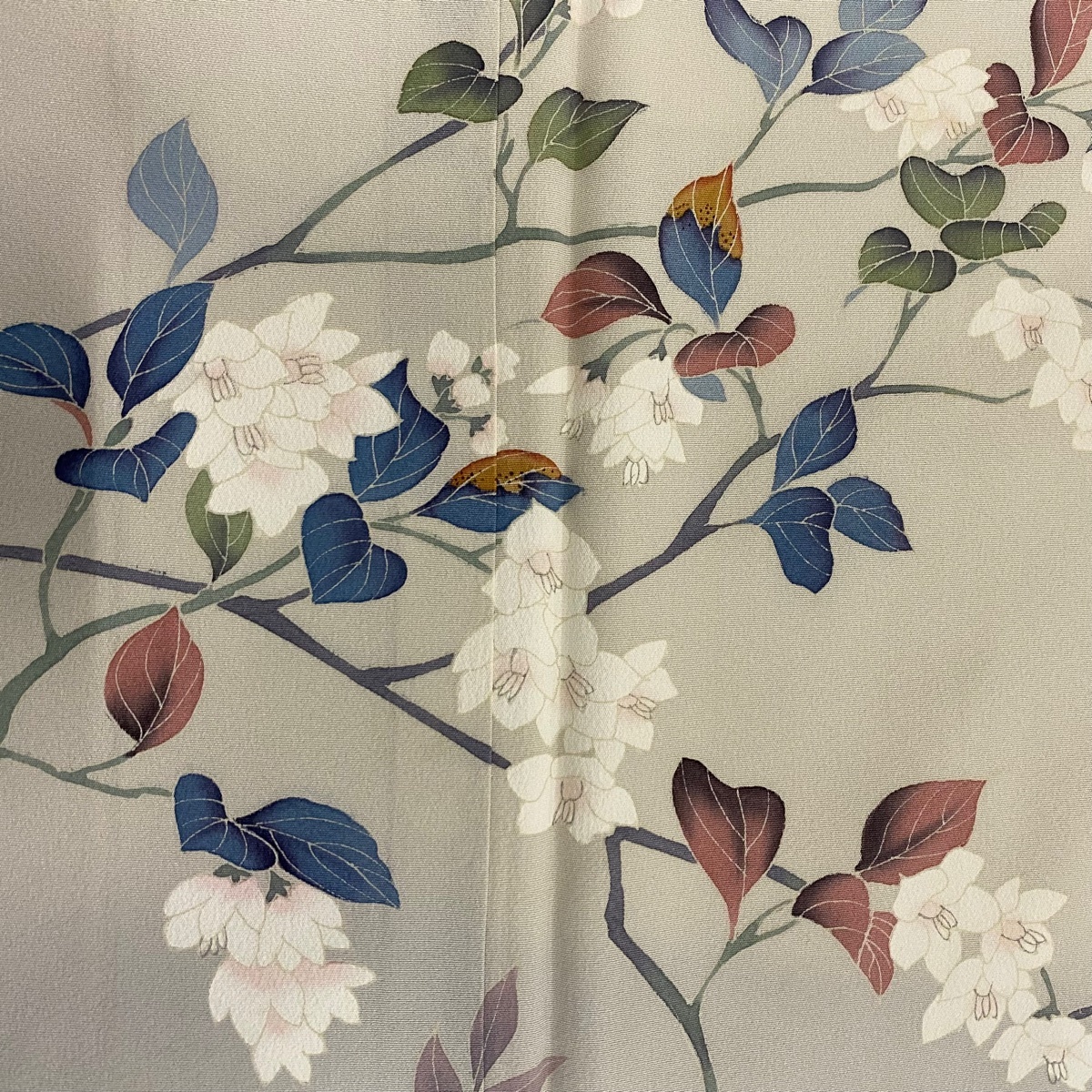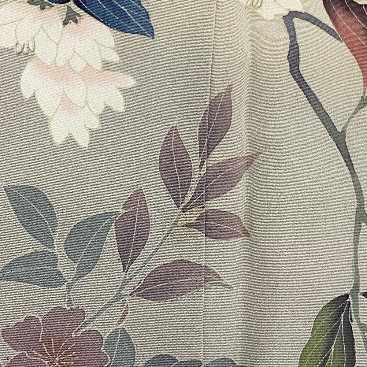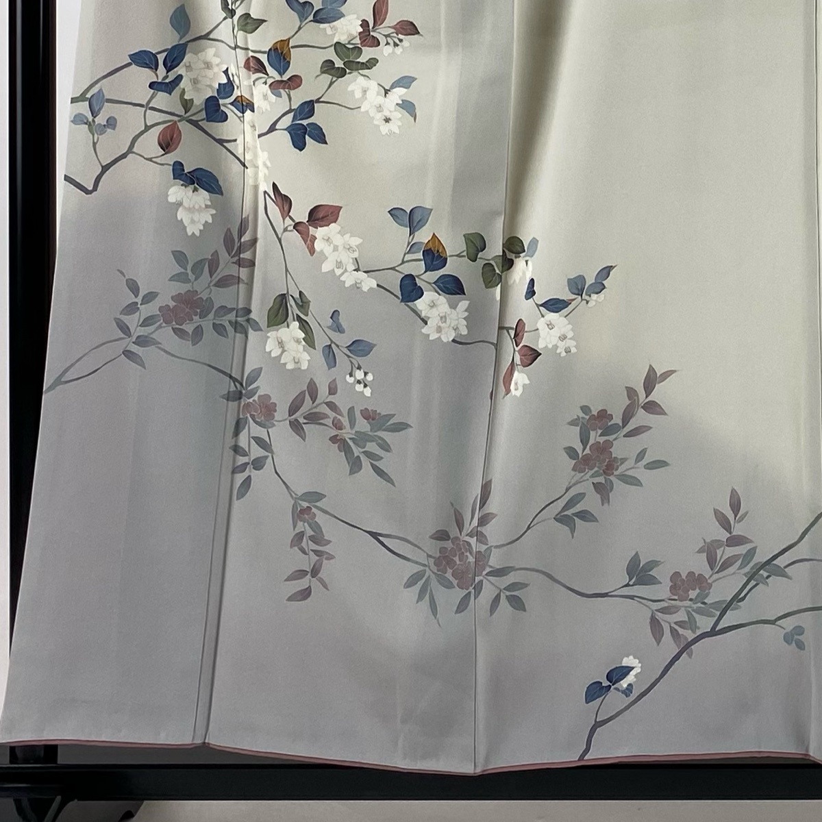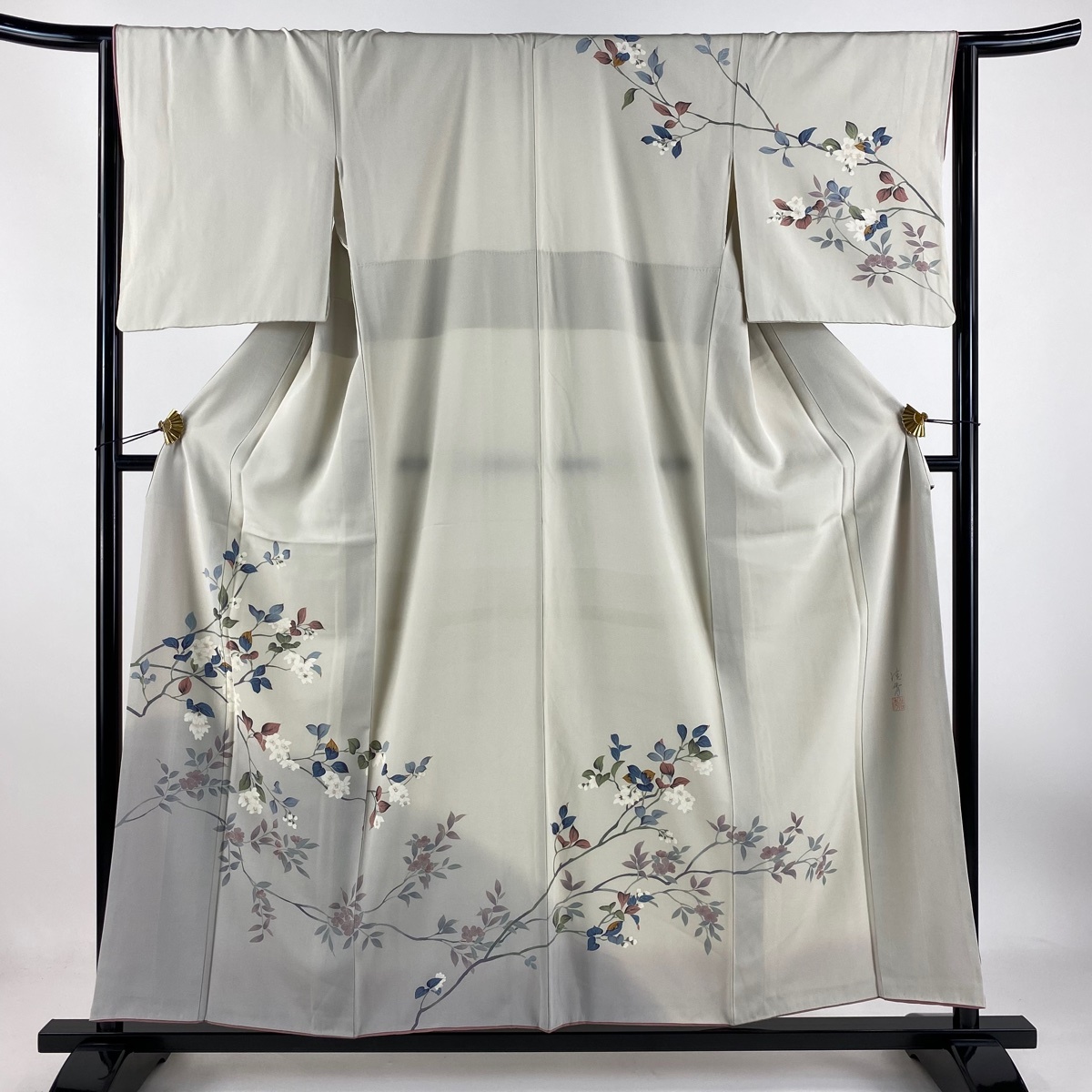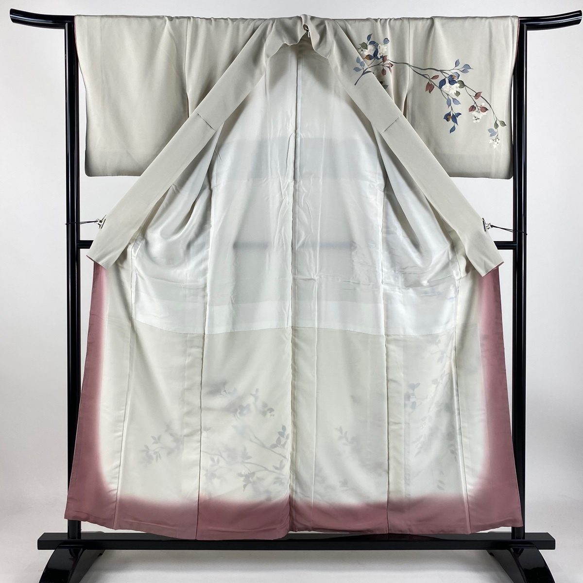 | 訪問着 美品 秀品 落款 枝花 枝桜 裾ぼかし ベージュ 袷 身丈156 裄丈64 M 正絹 【中古】 |