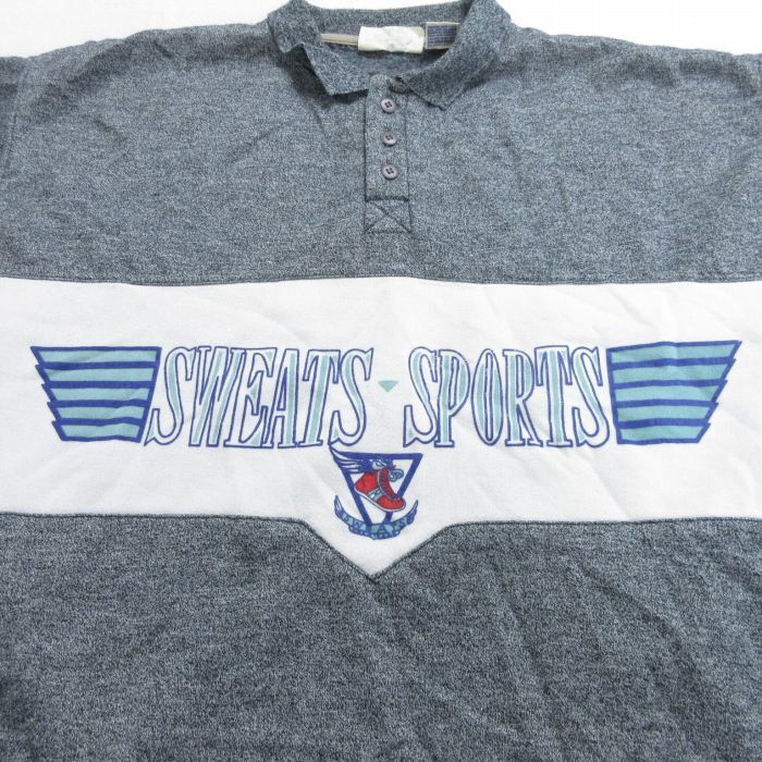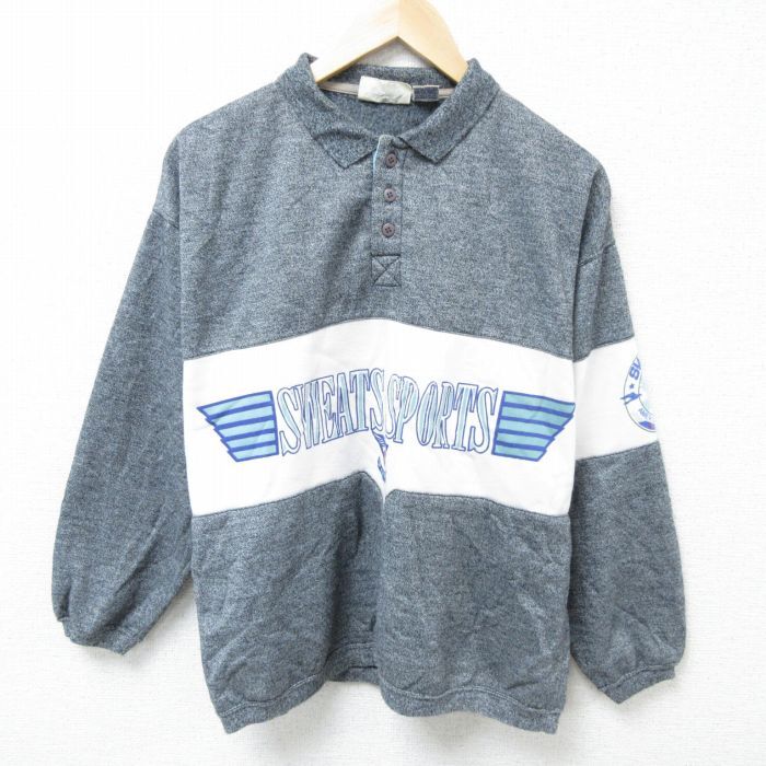 【商品名】 L★古着 長袖 スウェット メンズ 90年代 90s ウイングフット スポーツ ツートンカラー 襟付き 濃グレー 霜降り