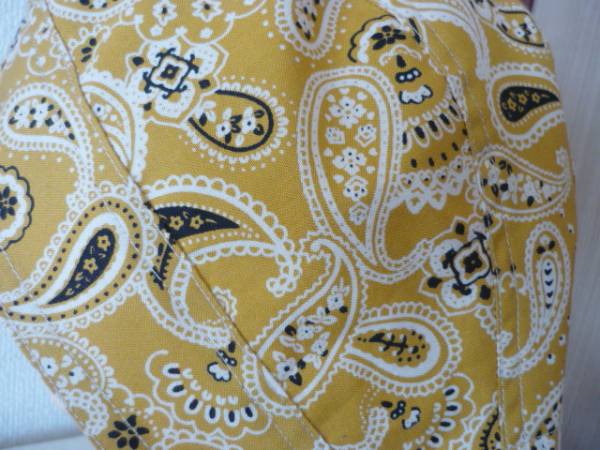 即決【ペイズリーくすんだ黄色】バンダナキャップ◆メットインナーキャップ◆ヘッドラップ◆ハンドメイド◆送料無料