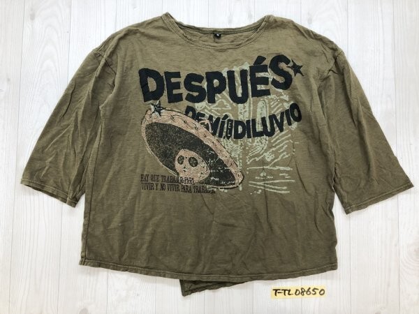 AMINA アミーナ レディース スカルプリント 七分袖カットソー カーキ です。