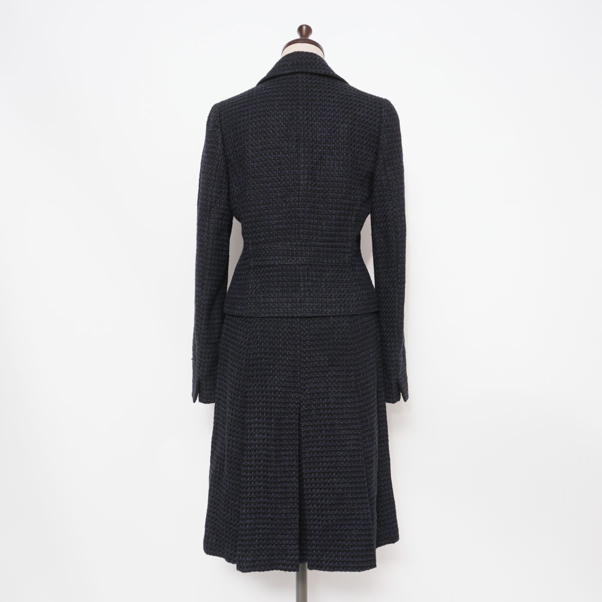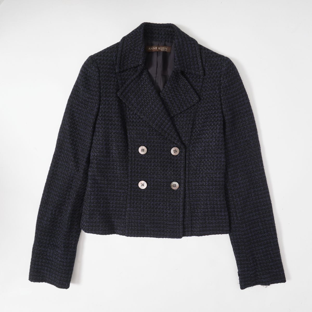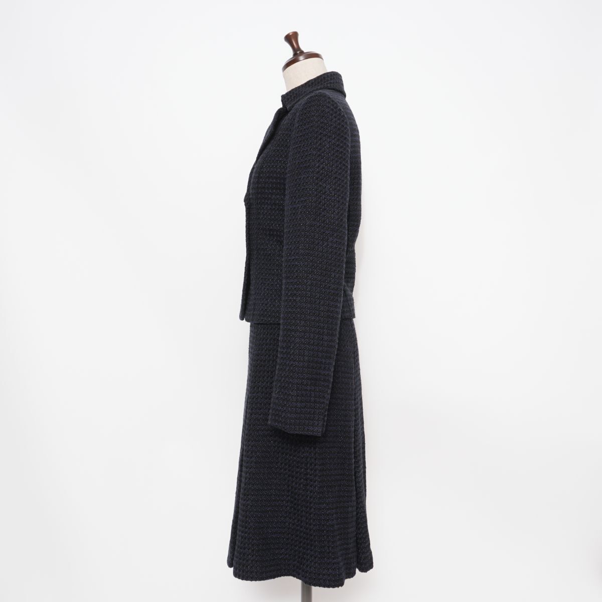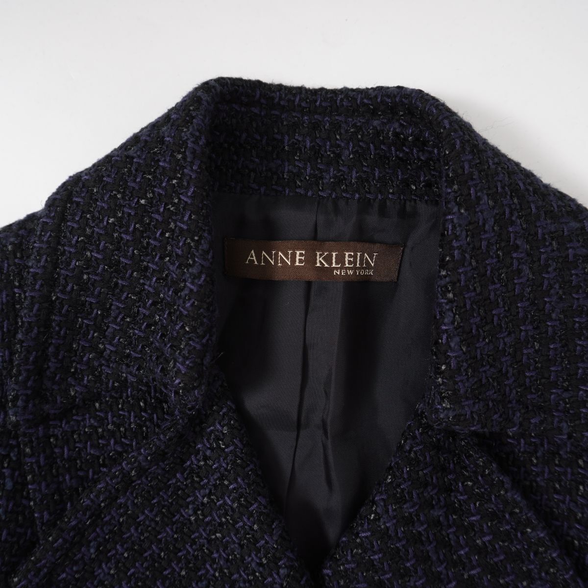 ANNE KLEIN アンクライン ウール混 ツイードセットアップスカートスーツ ミモレ丈 総裏 レディース ネイビー 紺 サイズ9*GD914