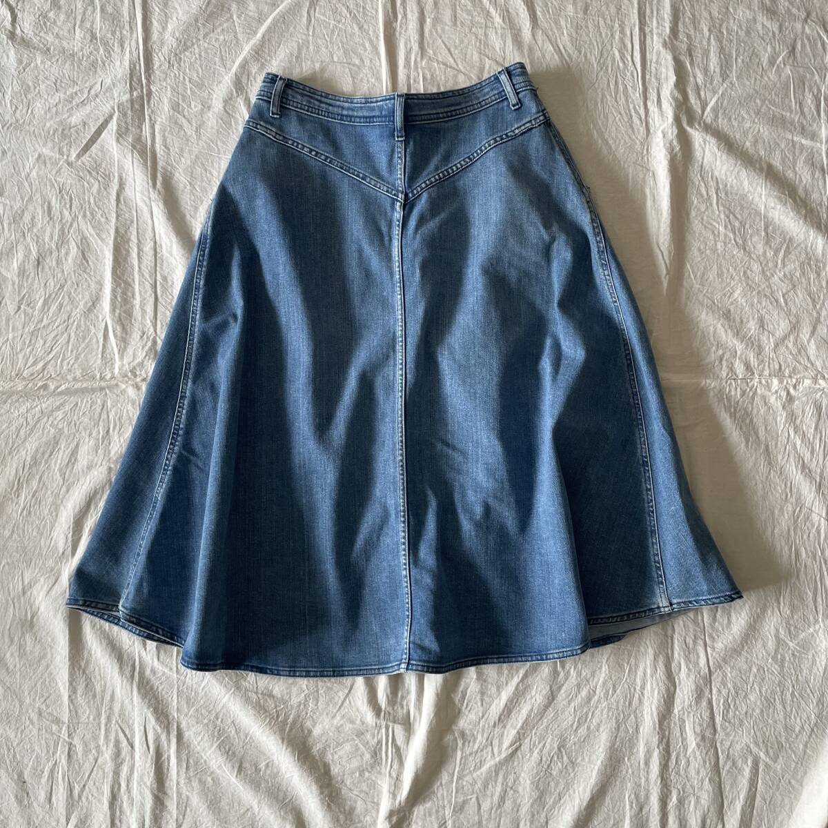 トップスを選ばず、着回しのきくデニムのロングスカートです。