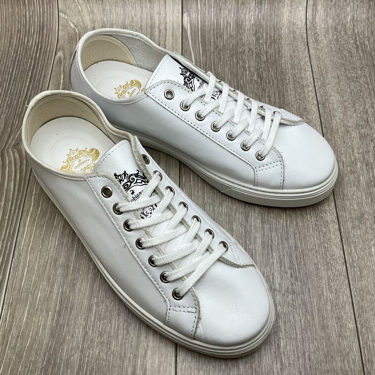 バッグやシューズで人気のイタリア発のブランド、Orobiancoオロビアンコのレザースニーカーです。