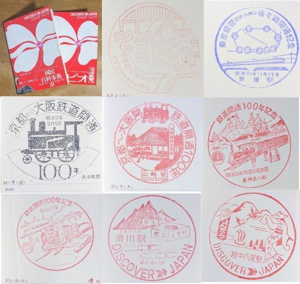 国鉄 スタンプ DISCOVER JAPAN STAMP NOTE 29ページ × 2冊 I2-27 28 今治駅50周年 鉄道開通100年(東神奈川・滑川)京都~大阪100年他