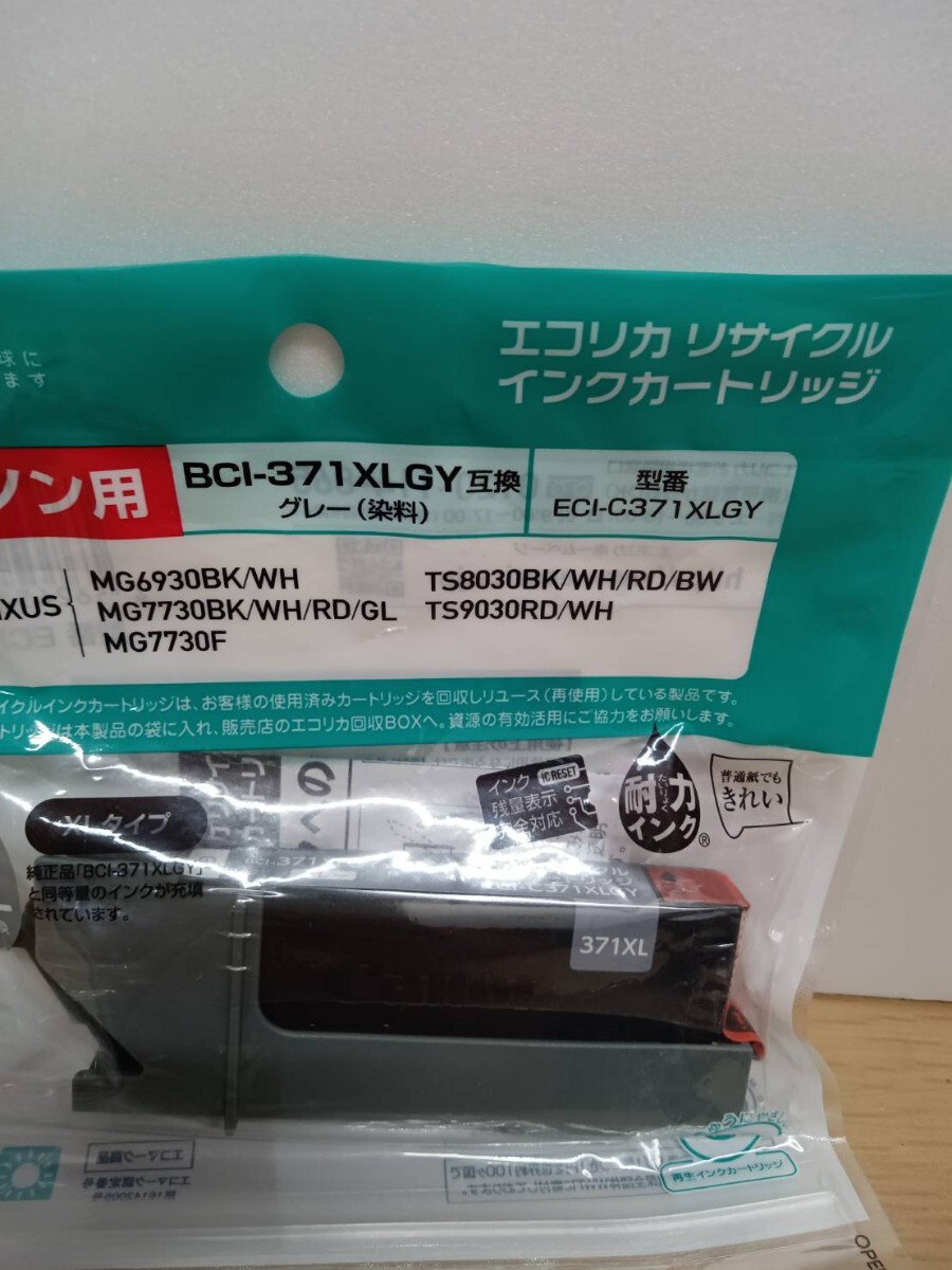 キャノン用 インクカートリッジ BCI-371XLGY 互換 グレー 371XL ECI-C371XLGY