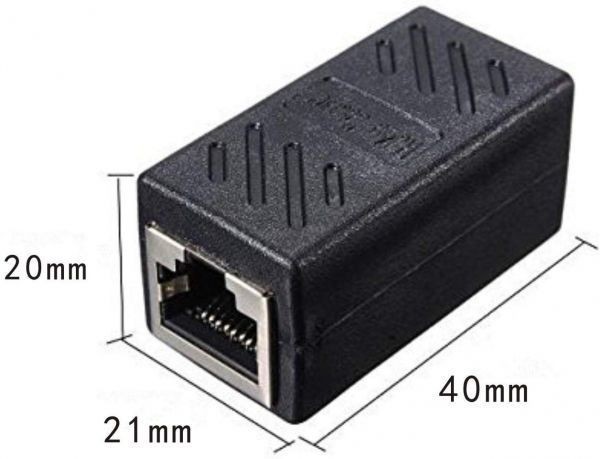 送料無料…RJ45 LANケーブル用中継コネクタ コンパクト ギガビット RJ45 延長 コネクタ プラグ 8P8C メス-メス ブラック 〈2個セット〉