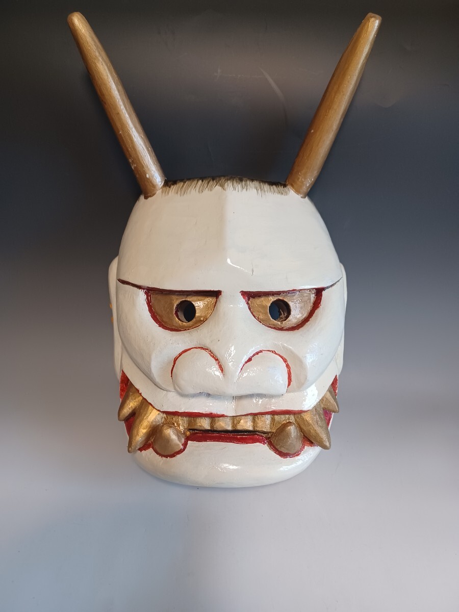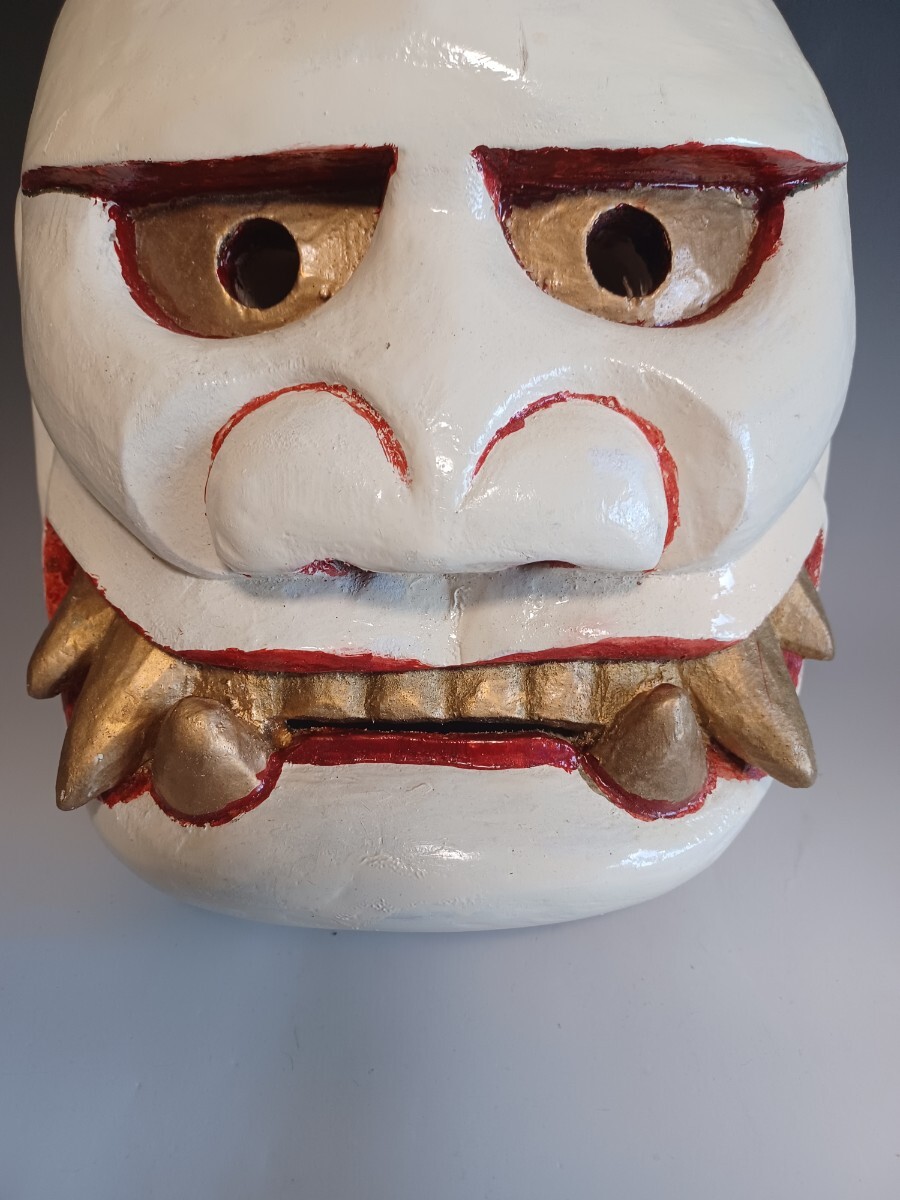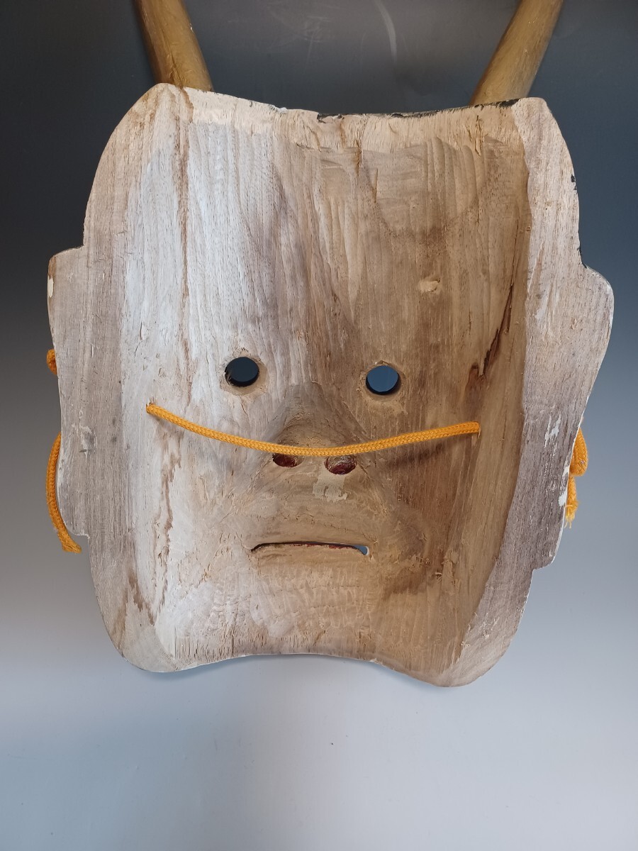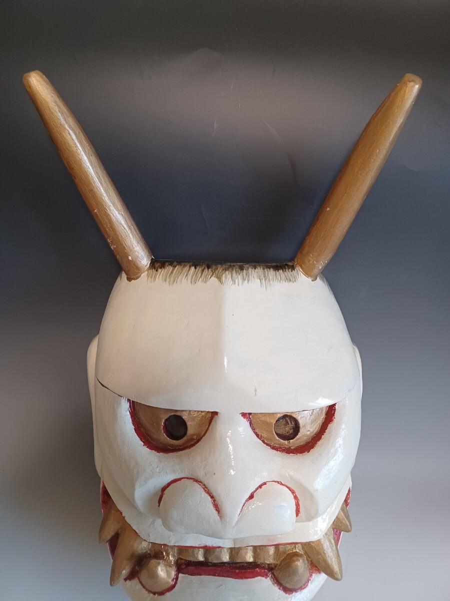 No.32 コレクター放出品  般若面  お面 魔除け 木彫り 木彫り面 能面 神楽 細密彫刻 木工芸 箱なし 和風インテリア