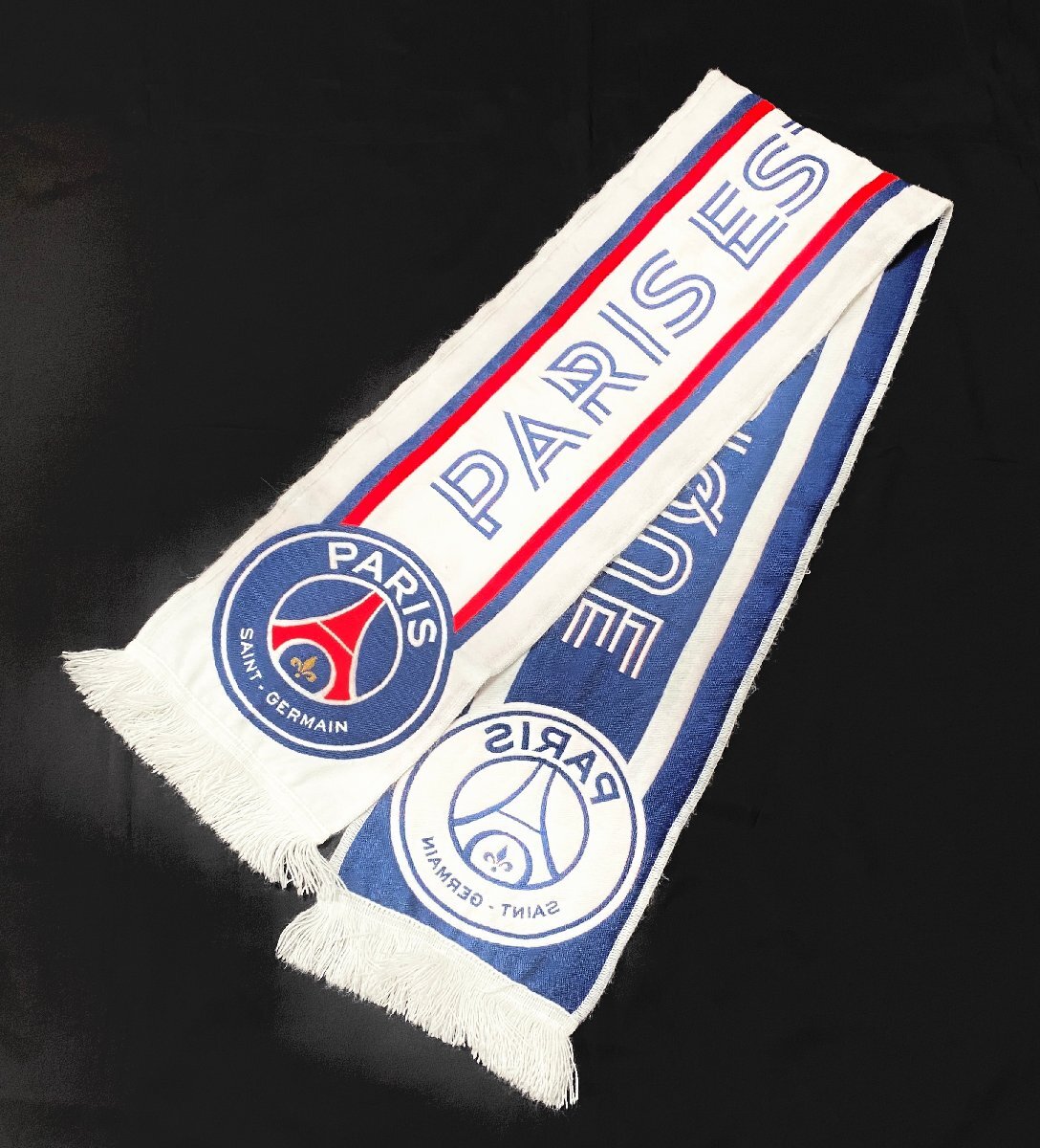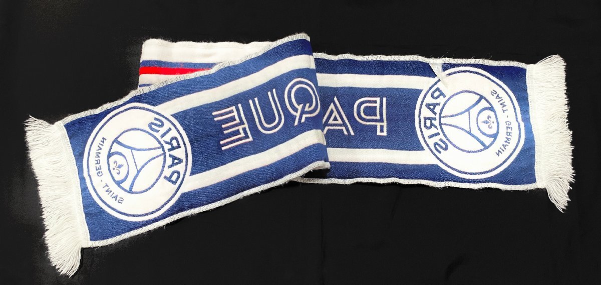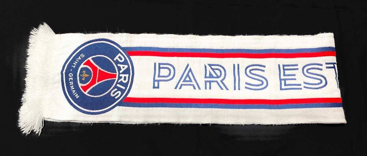美品 パリサンジェルマン PARIS SAINT-GERMAIN タオルマフラー ストール 刺繍 ロゴ マーク フリンジ