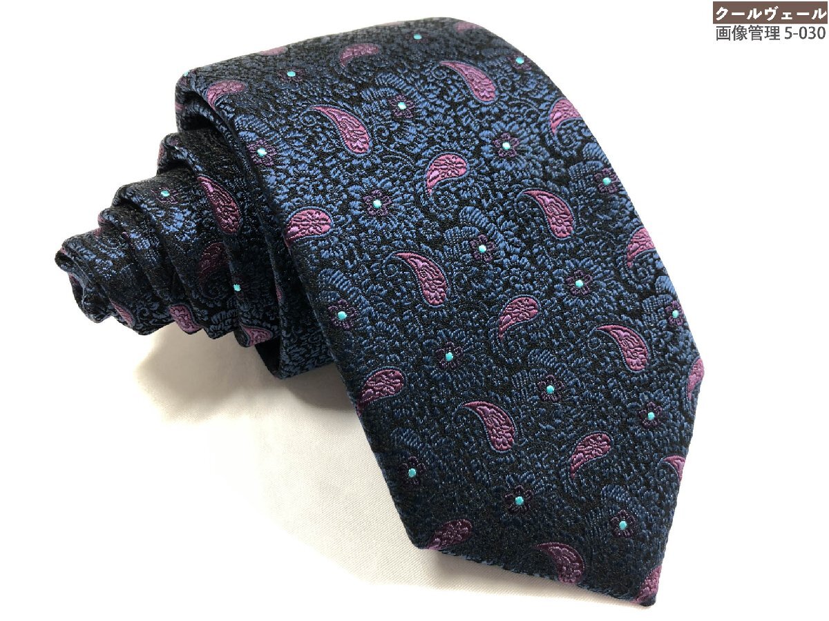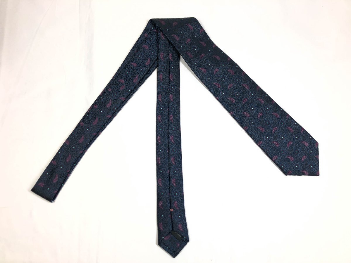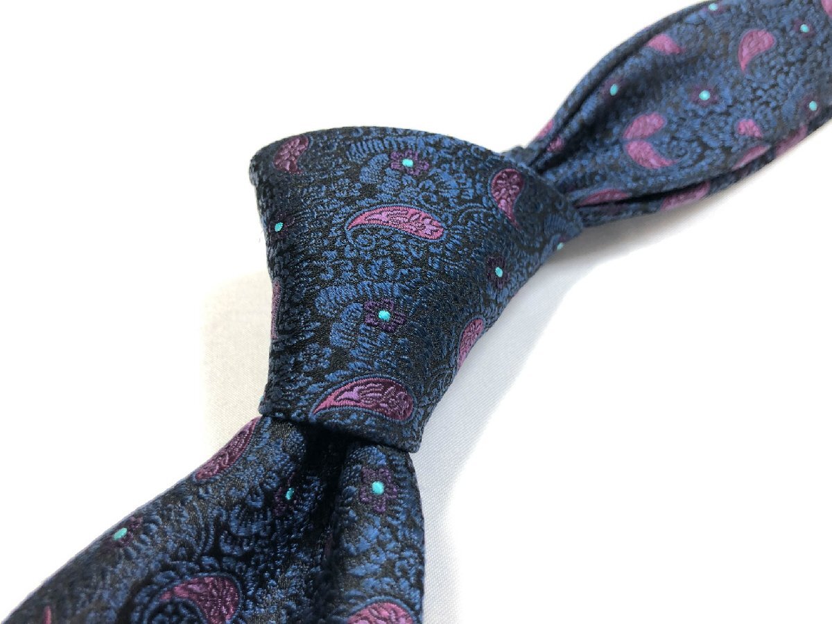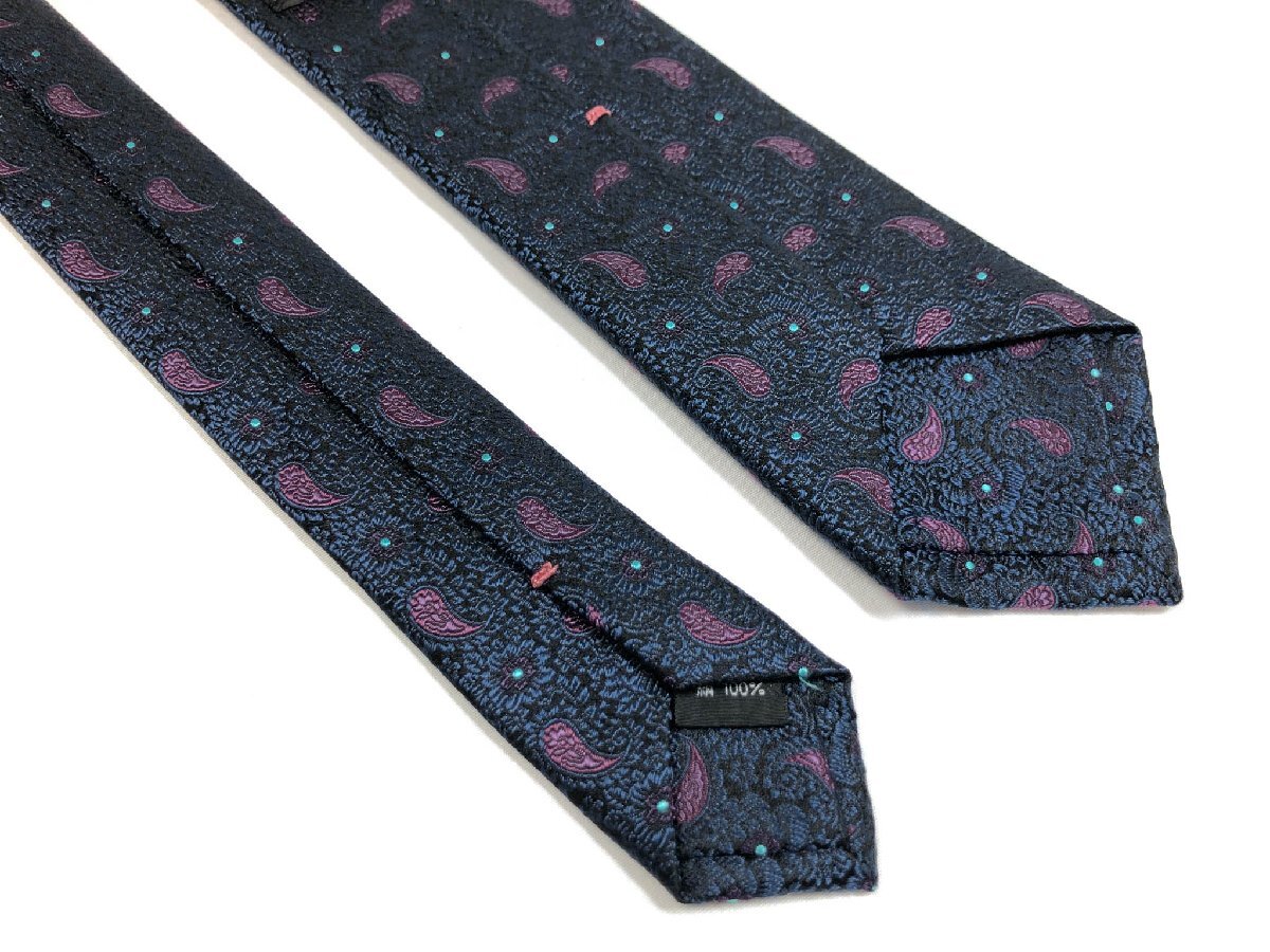 超美品【アルチザン ARTISAN】お洒落なペイズリー刺繍柄♪ シルク ネクタイ (メンズ) 濃いめのネイビー×パープル系 ◇17MM8704◇