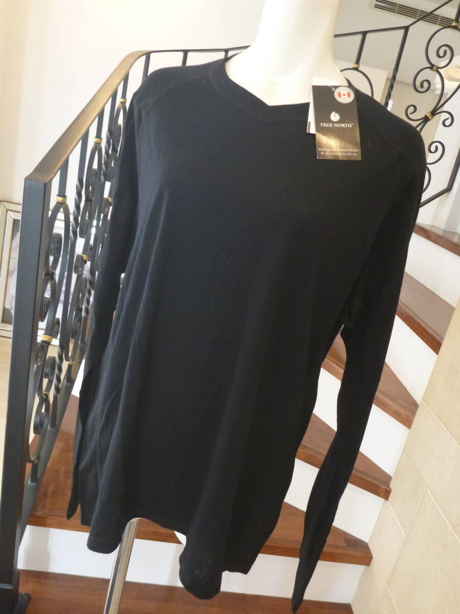 新品 TRUE NORTH ★オーストラリア産メリノウール100 黒 ブラック 薄手 セーター L
