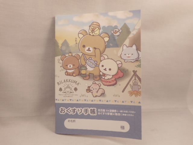 リラックマの お薬手帳で、キャンプタイプです