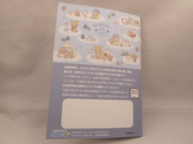 【即決、送料110円~】リラックマ お薬手帳 A【71680】可愛い キャラクター おくすり手帳 San-X シンリョウ