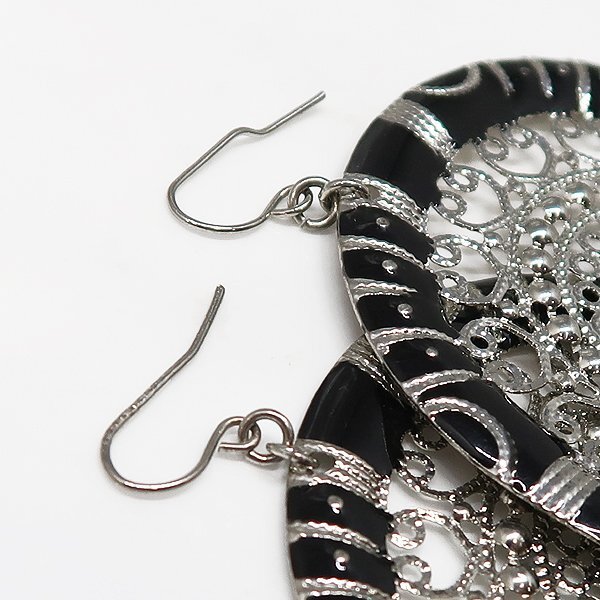 DKG★送料無料 BVA815★ エナメル 幾何学模様 ラウンド デザイン フック ピアス 大ぶり 透かし 丸型 フックピアス
