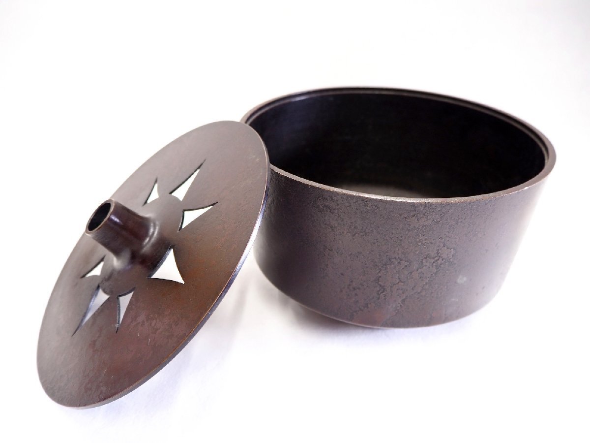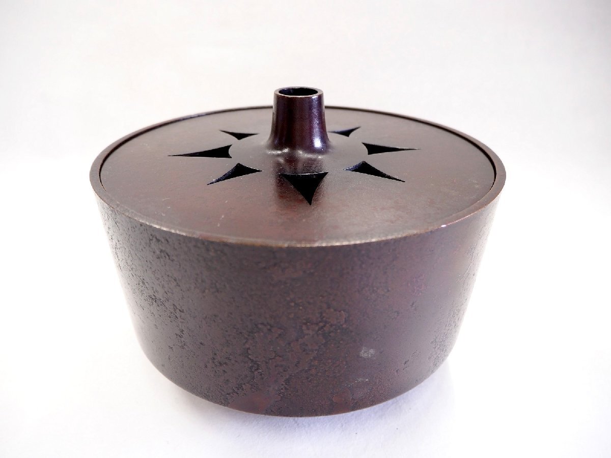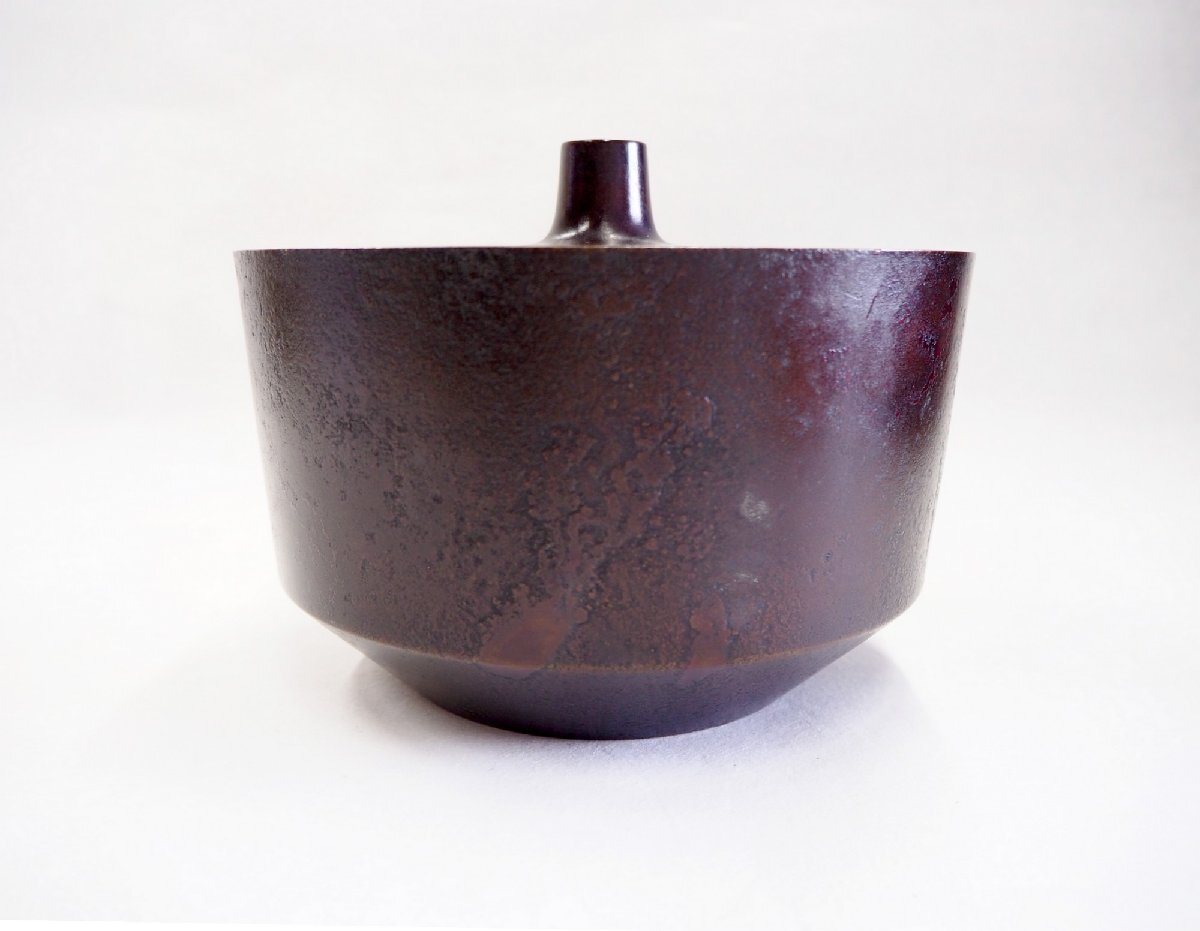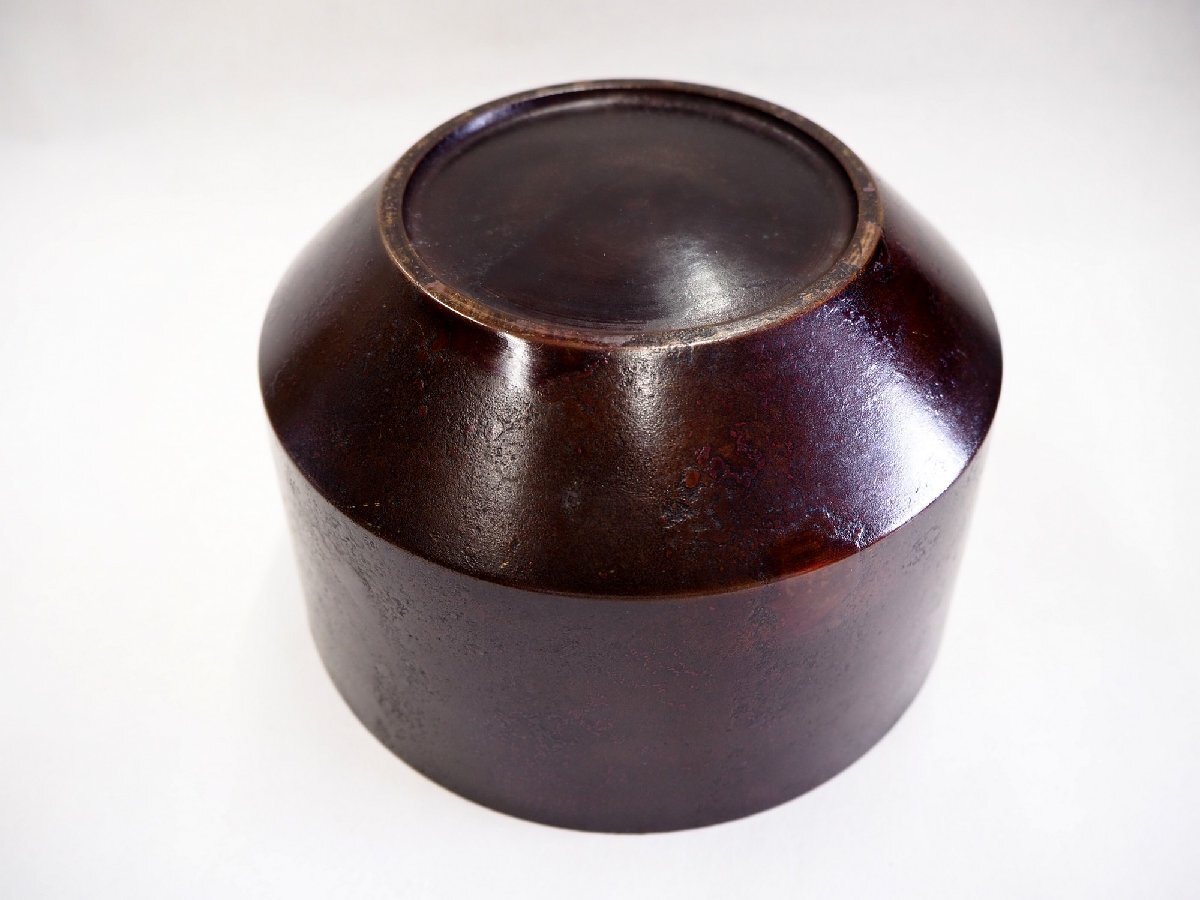 ★☆ 【 銅製 花器 水盤 蓋付 直径19.3cm 】華道具 花生 香炉 小物入 金属工芸 高岡銅器 ☆★