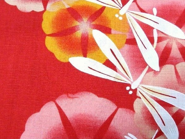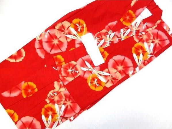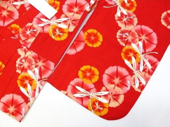 女の子 女児 子供浴衣 赤にトンボ朝顔 綿紅梅 120cm 新品 83