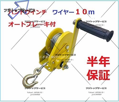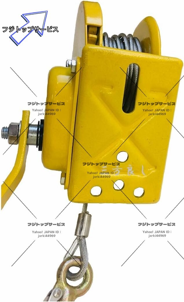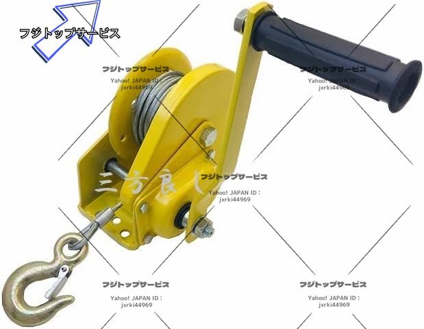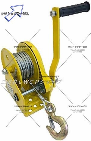 回転式ミニウインチ 手動ウィンチ ハンドウインチ 耐荷重1000kg/オートブレーキ ワイヤー8M