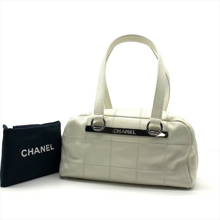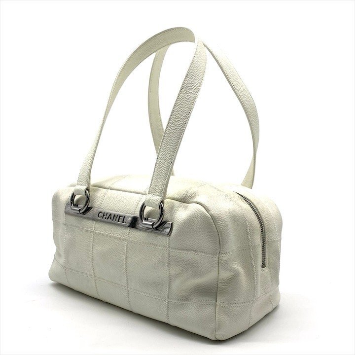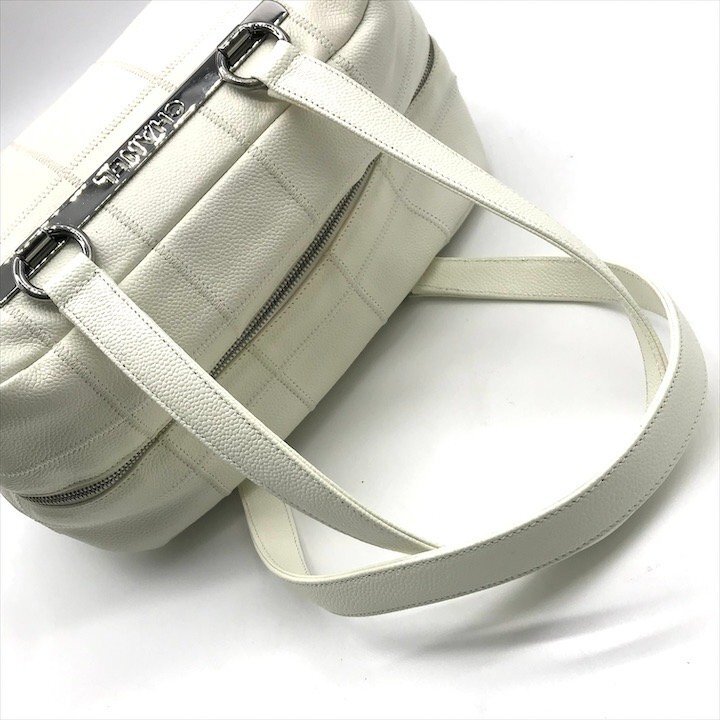 1円 良品 CHANEL シャネル チョコバー キャビアスキン シルバー金具 ハンド ショルダー バッグ 肩掛け ホワイト レディース かばん a10621 | |||