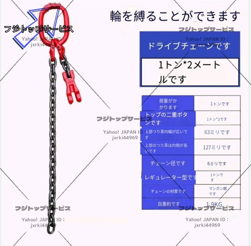 品質保証★ 運搬作業用に チェーンスリング スリングフックタイプ G80マンガン鋼製 使用荷重2t 1本吊り ェーン径8mm 長さ1m調節器