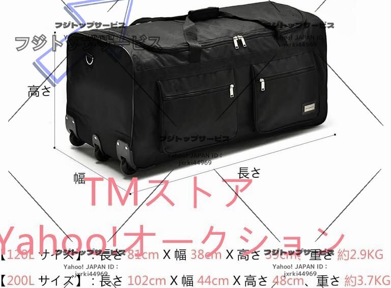 数あるオークションの中からご覧頂き、本当にありがとうございます♪当方、お客様が安心して取引が出来るよう真心込めて【商品詳細】★状態:新品未使用◆【バッグ仕様】:収納可能サイズ:120L、サイズ:81cm×38cm×39cm、メイン素材:ポリエ