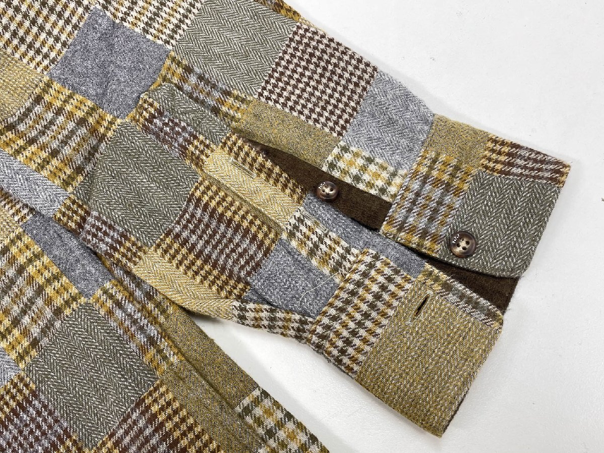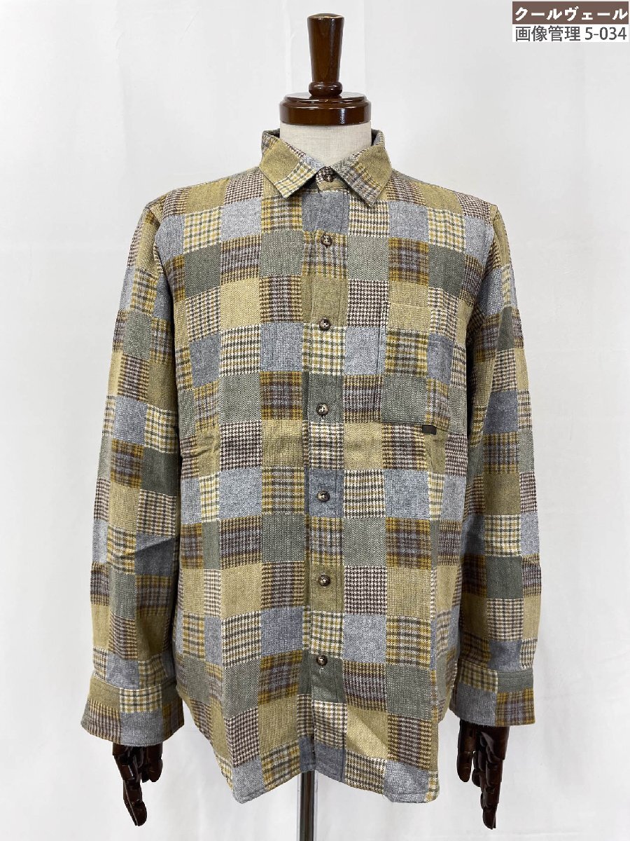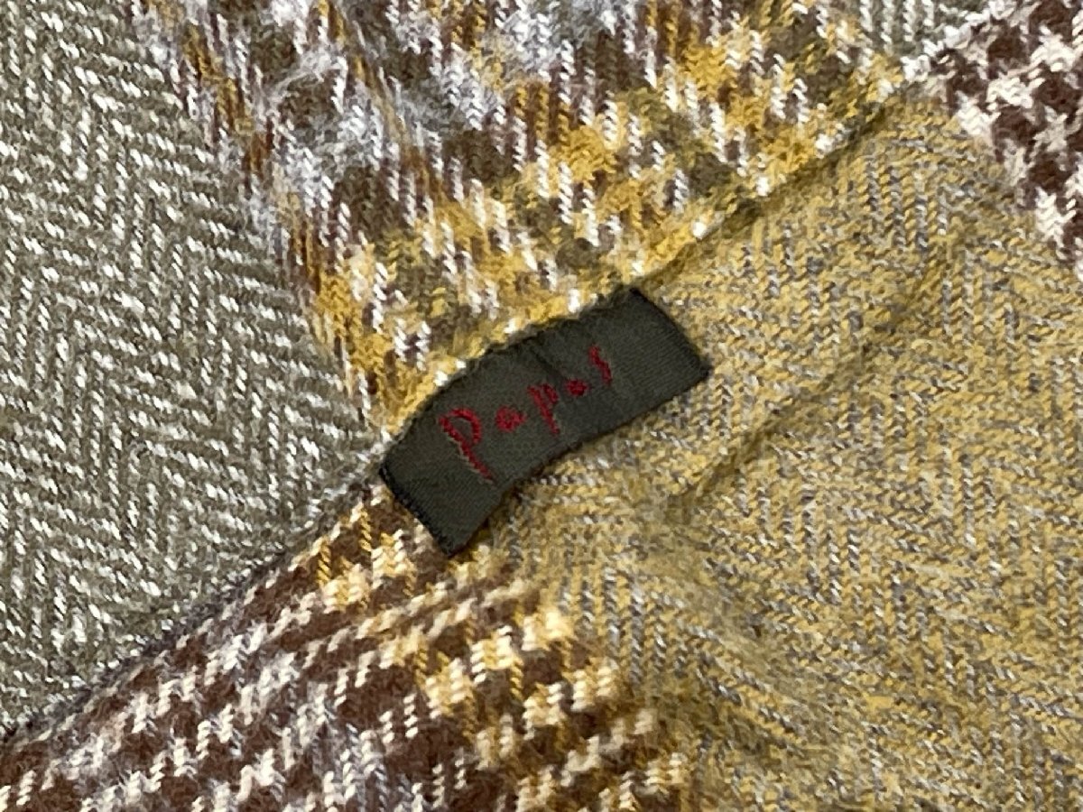 美品【パパス PAPAS】 D0414FBN012 綿100% パッチワーク風 チェック柄 セミワイドカラー 長袖シャツ (メンズ) 48/M ブラウン ◇38MK6439◇