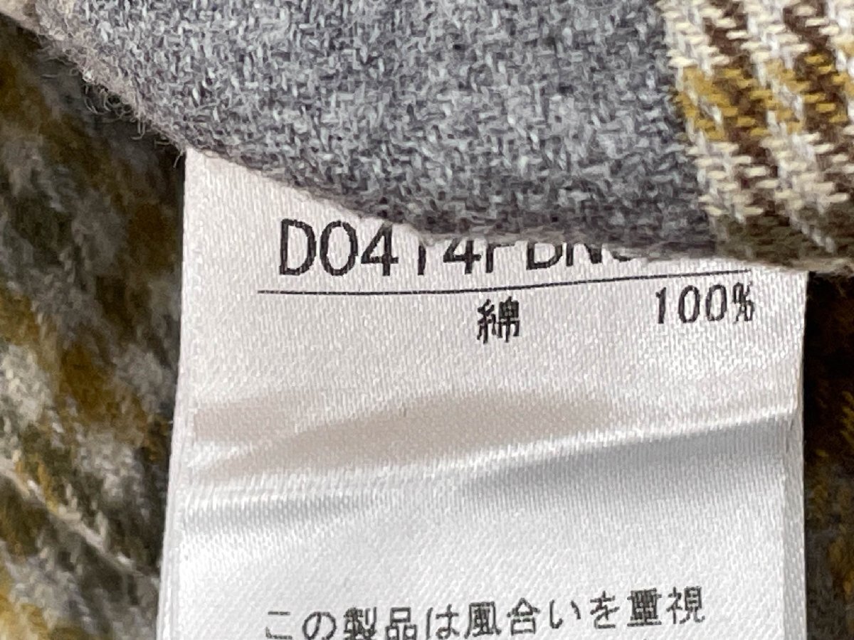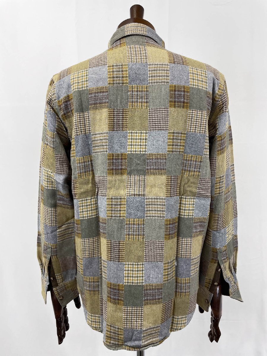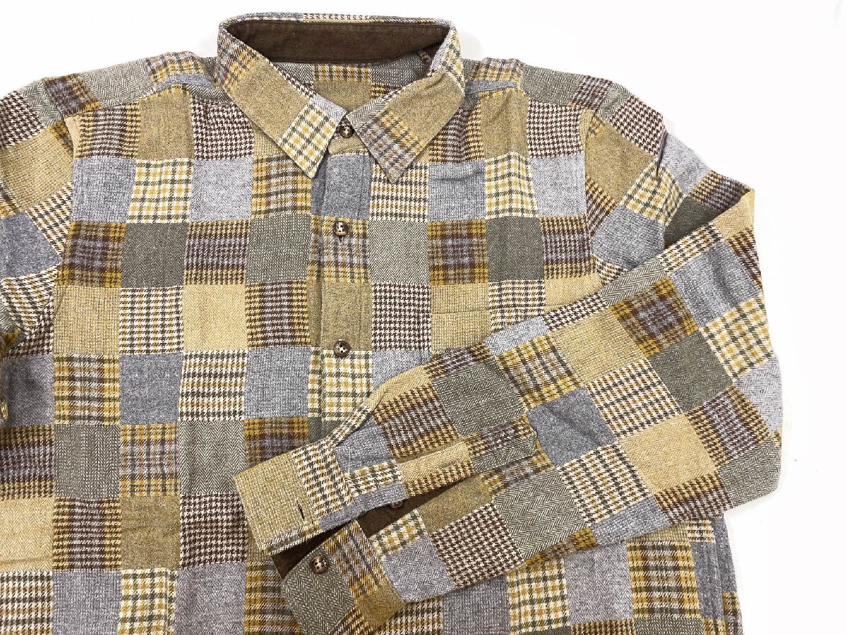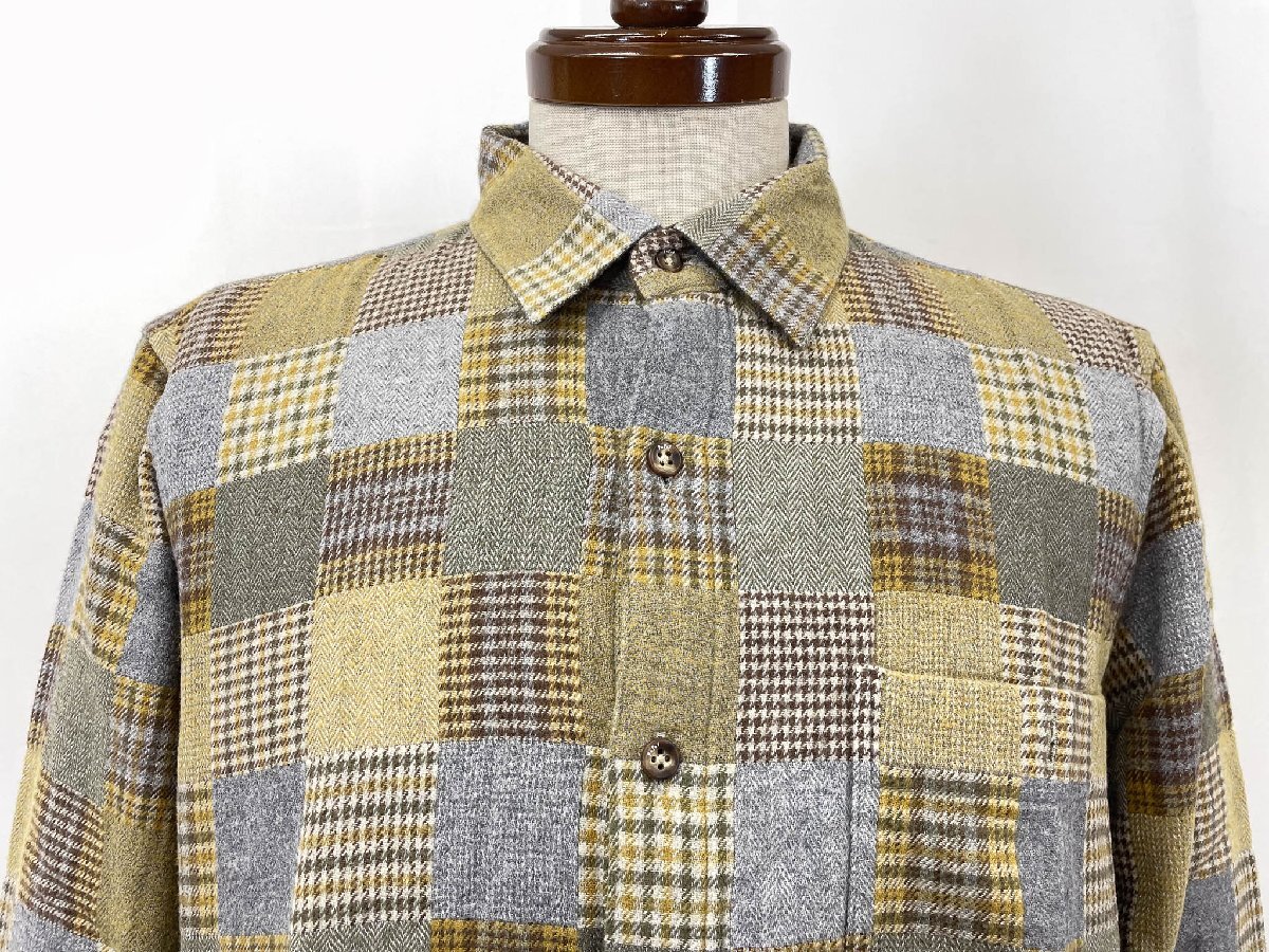美品【パパス PAPAS】 D0414FBN012 綿100% パッチワーク風 チェック柄 セミワイドカラー 長袖シャツ (メンズ) 48/M ブラウン ◇38MK6439◇