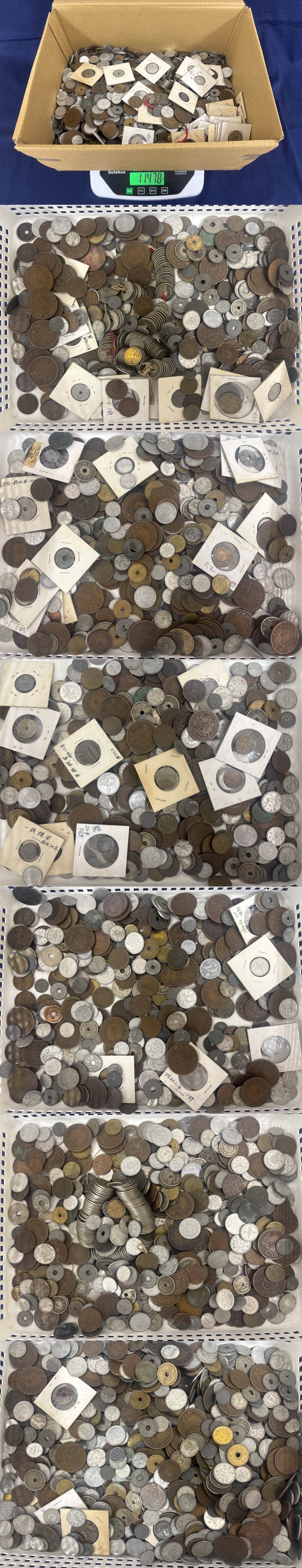 〇【同梱不可】日本古銭 おまとめ約11.4㎏ 一銭・五銭・十銭など〇sd45 段ボールも含めた重さです。 写真の物が全てです。 その他、経年劣化による傷やシール跡がある場合がございます。ご理解頂ける方のみ入札をお願いします。 | |||