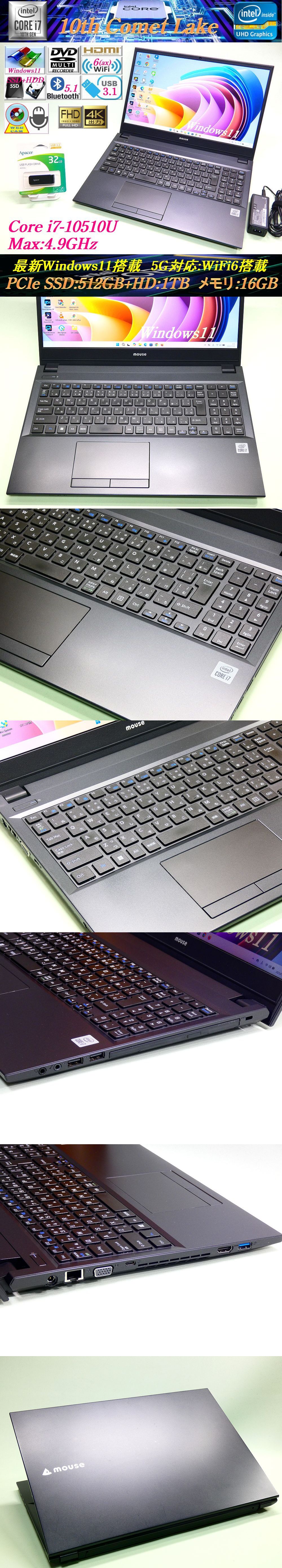 【特徴】:高性能、高速、最新多機能(内蔵3ドライブ仕様)パソコン -高年式2022年1月モデル →Windows11正式対応モデル -Windows11最新バージョン 25H2搭載 -インテル 第10世代CPU Core i7-10510U -インテル UHD グラフィックス for 10th Gen -大容量 SSD/512GB(M.2, NVME, PCIe) -大容量 HDD/1TB(SATA600) -DVDマルチドライブ -大容量 メモリ/16GB(DDR4-2666) -USB3.1 Type-C コネクタ -WiFi6(ax)対応&Bluetooth5.1 -オールセットアップ済。即使用OK!! →充実したマニュアルも標準添付 マウスコンピューターについて パソコン専門の国内製造のブランドで、高性能かつ高機能なパソコンの製作に定評があります。 基本性能の充実はもちろん、拡張性や音響、メンテナンス性など多角的な設計が高く評価されており、根強い人気を誇ります。 特に注目すべきトレンドは、拡張性を最大限に活かした「内蔵3ドライブ仕様」です。 これは高速なNVMe SSD、大容量のSATA バックアップ用途のHDD、そして光学ドライブを組み合わせた構成で、パフォーマンスとストレージ容量の両立に加えディスク記録も可能にしています。 第7世代と比較して、CPU性能は約1.8倍に向上。処理能力が飛躍的に進化し、動画編集やゲームも快適に楽しめます。 さらに、PCIe対応の超高速SSDを搭載。OSやアプリをSSDに配置することで、起動時間を大幅に短縮し、複数のアプリを同時に使う作業もスムーズにこなせます。 加えて、高速DDR4メモリ(デュアルチャネル対応)を採用し、データ処理のさらなる高速化を実現。日常使いからクリエイティブな作業まで、あらゆるシーンで快適なパフォーマンスを発揮します。